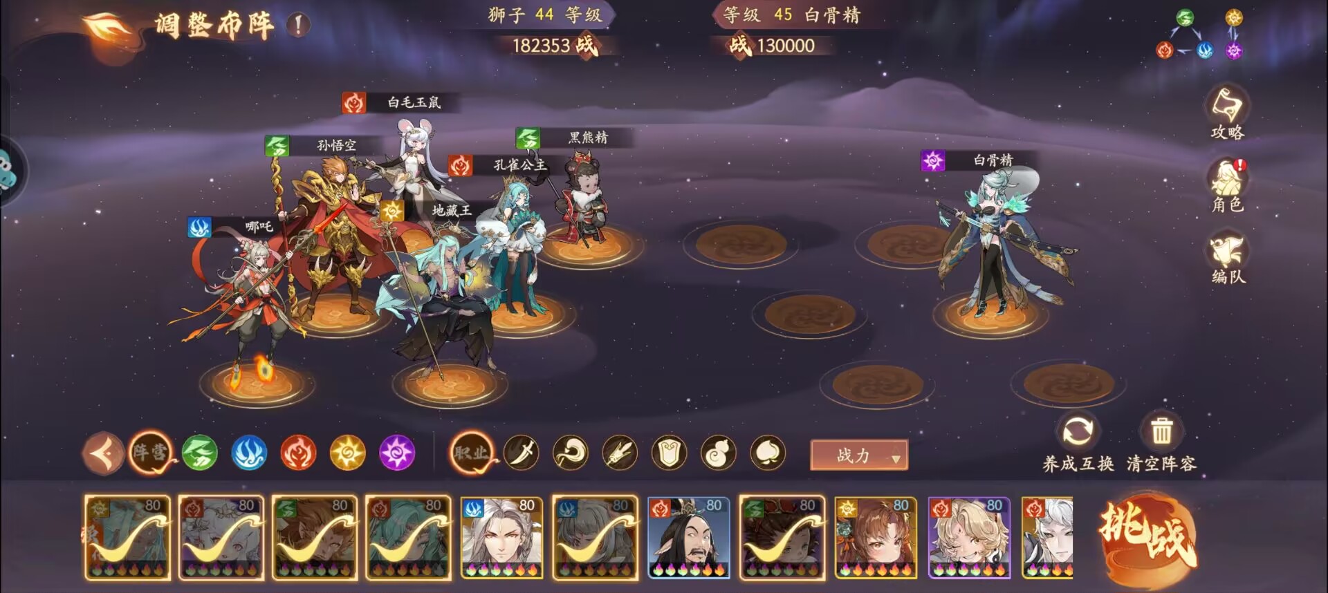 日常pve这样就行。如果打boss老鼠精是必须上的。哪吒尽量拉到彩一。老鼠精哪吒都是打单boss的神器。 然后打装备副本用羊力大仙。 pvp狐狸一定要上。奶妈换南极