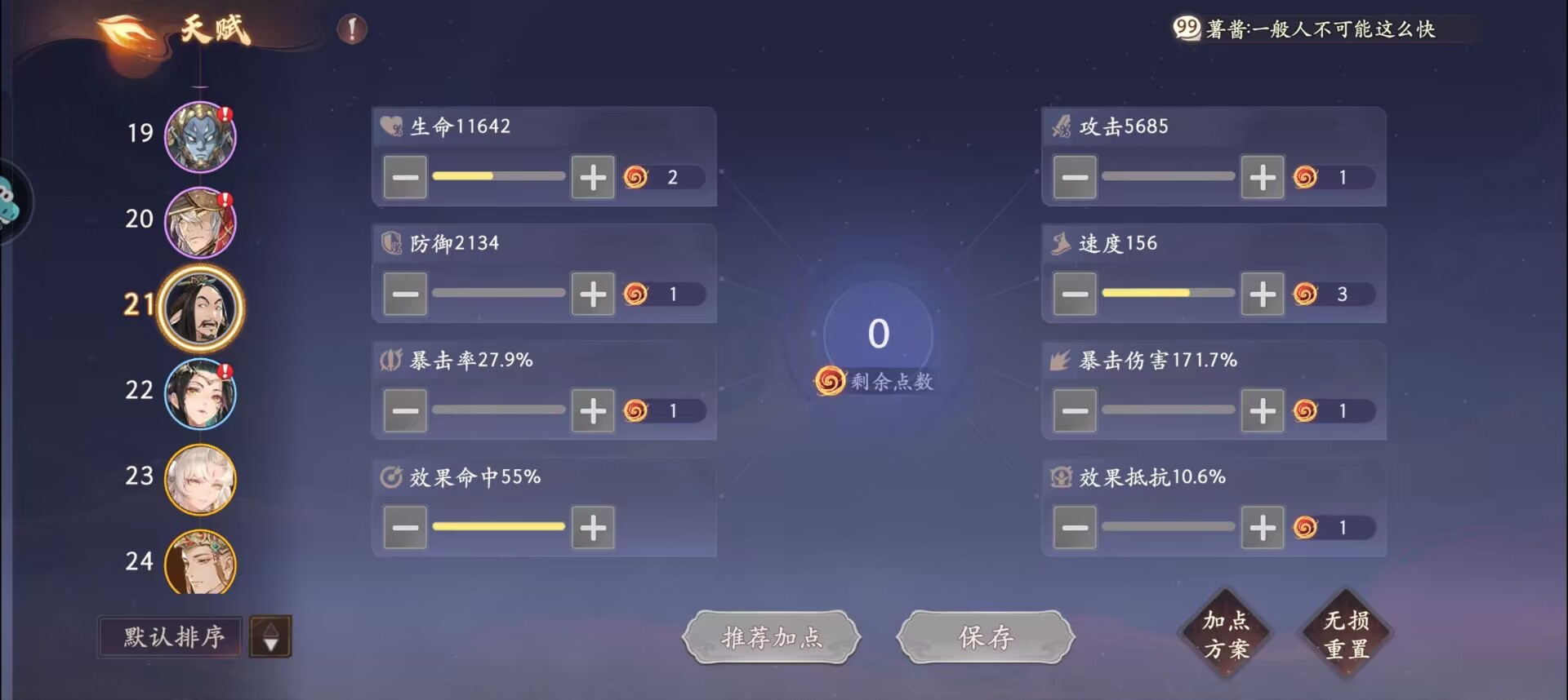 然后就是天赋补速度!比如13层的装备boss速度为155。那么我们就可以把速度加到156。比boss快就行了。