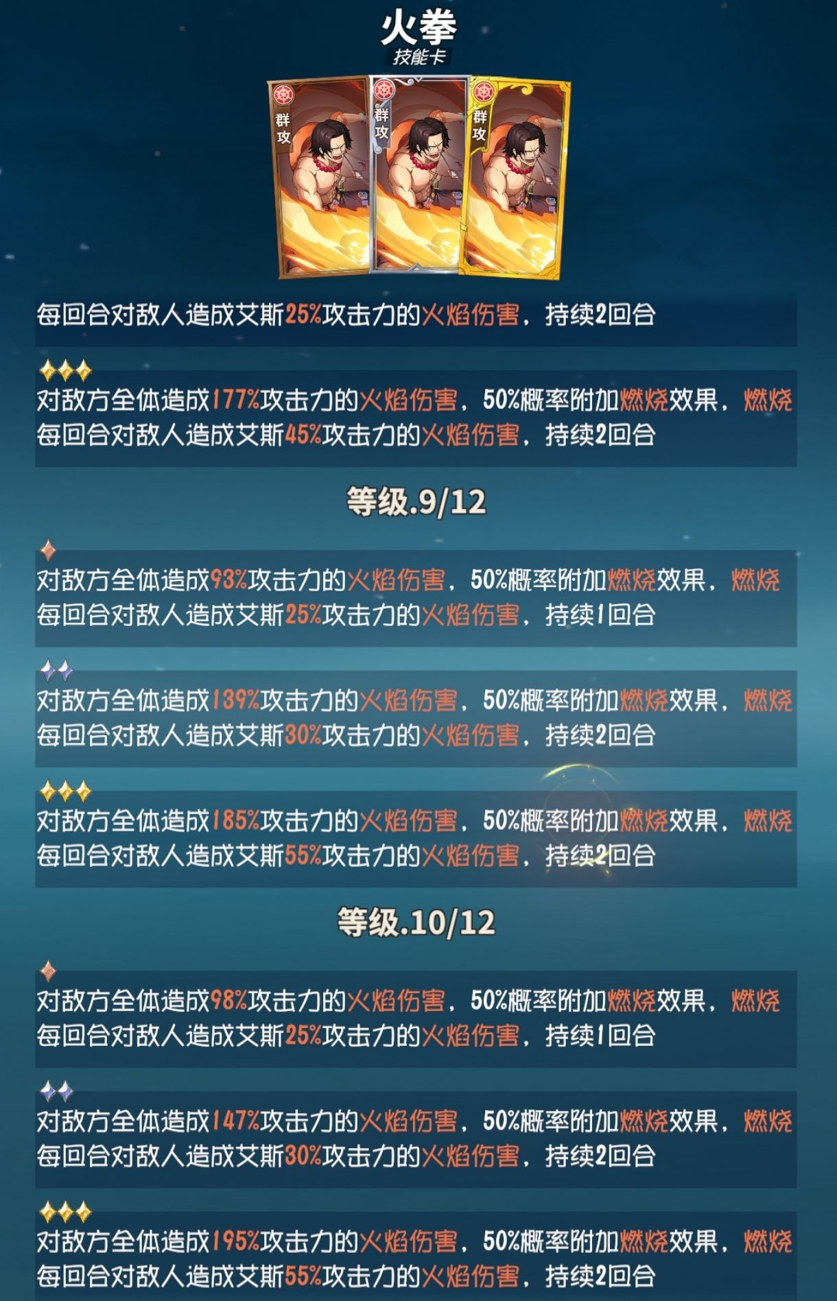 技能1:燃烧效果上限提升