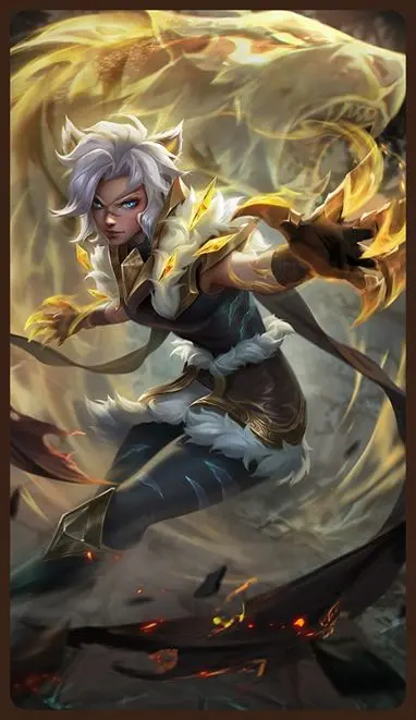 森林女王变为虎形态并向敌方最远的目标飞扑,击飞并必定晕眩范围内的敌方。该技能无视护盾且必定命中。一段时间后森林女王会变回人形,如果敌方有英雄阵亡,虎形态的持续时间会增加并回复自身大量生命值。虎形态时,森林女王会提升自身一定比例的攻击力,生命值和固定的护甲,魔抗以及速度,且虎形态的普攻附带轻微击退效果。但是,虎形态时释放技能与受击无法回能。