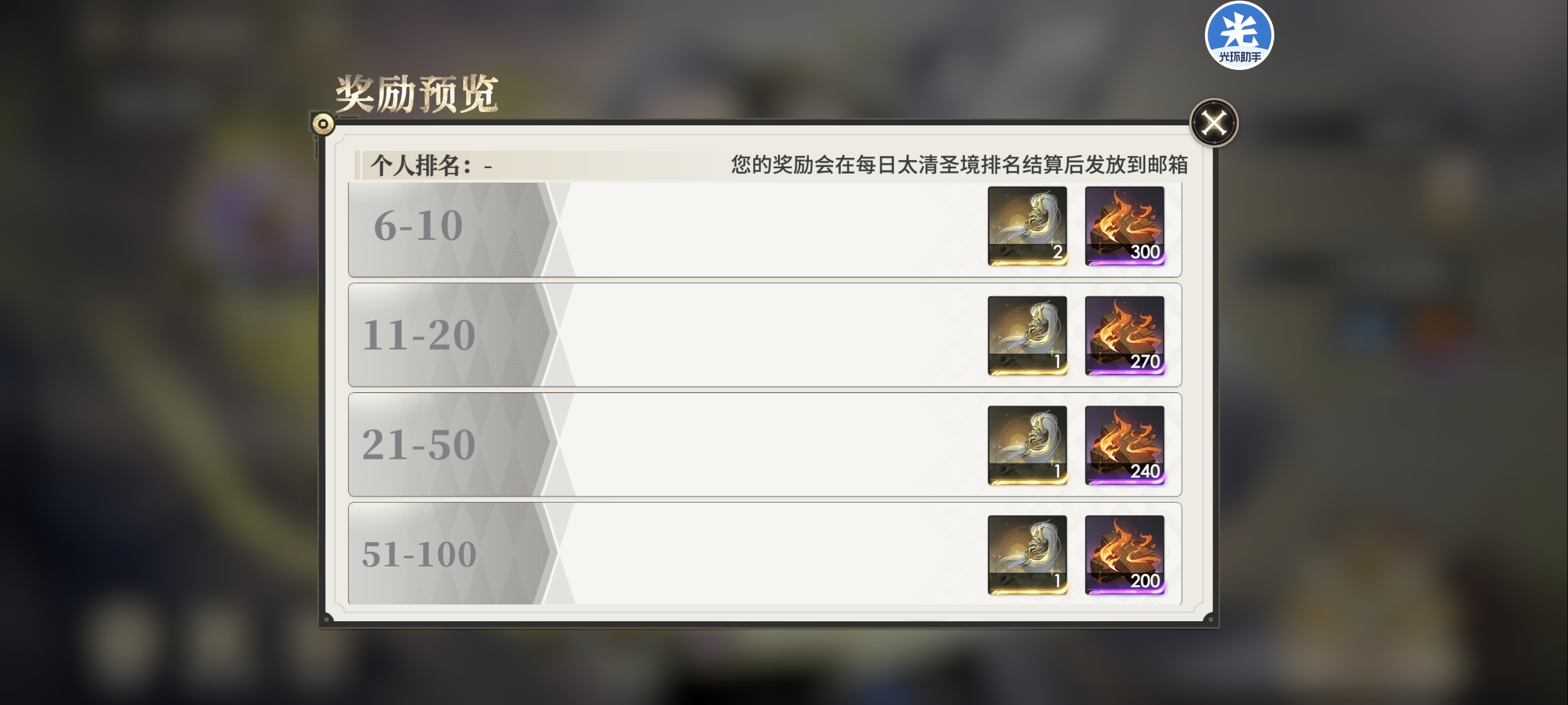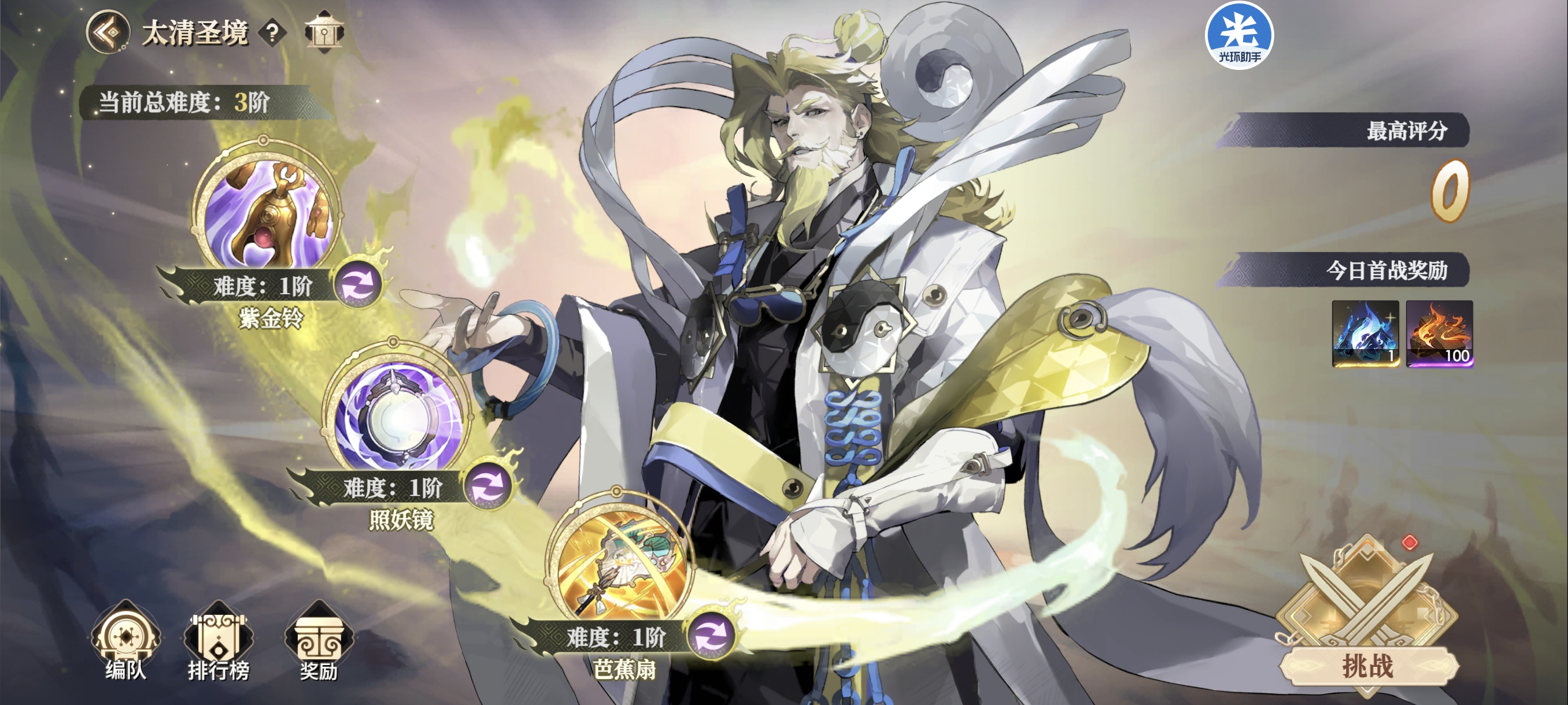 挑战BOSS关卡,每日保底获得1个天炎炉薪+100神火炉薪,并在结算时根据排名情况获得奖励,前10名可获得2个法宝抽,前100名也可获得1个法宝抽。