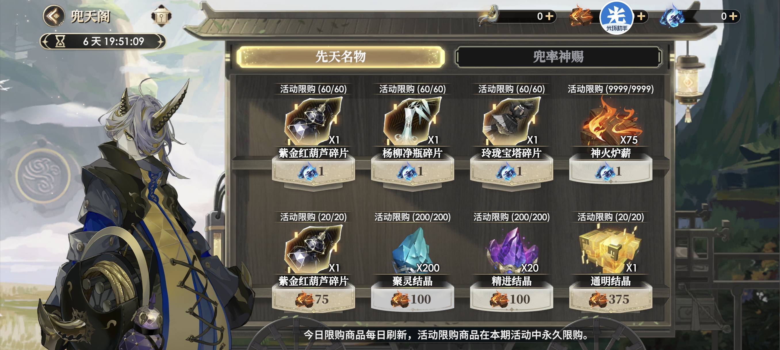 此商店可用活动获得的天炎炉薪和神火炉薪换取奖励。(可换取其他化臻法宝碎片)