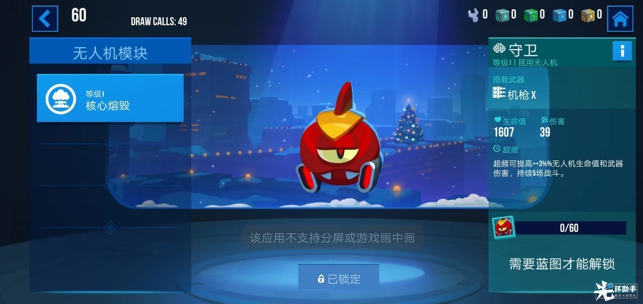 1、守卫无人机:这是一款民用无人机,其承载武器是机枪X,生命值最高的一款无人机。无人机模块激活时,其就地停止,会切换为自毁模式。5秒后会发生强烈爆炸,摧毁无人机并对一定半径范围内所有的英雄造成一定的伤害,无视任何的障碍。无人机等级越高,摧毁的半径范围和伤害越大。