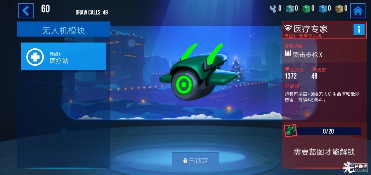 无人机模块激活时,无人机就地停止,切换为医疗站模式,无人机周围一定半径范围内的所有队友均能得到治疗,恢复一定的生命值,无人机等级越高,治疗持续的时间、范围、生命值就越高。