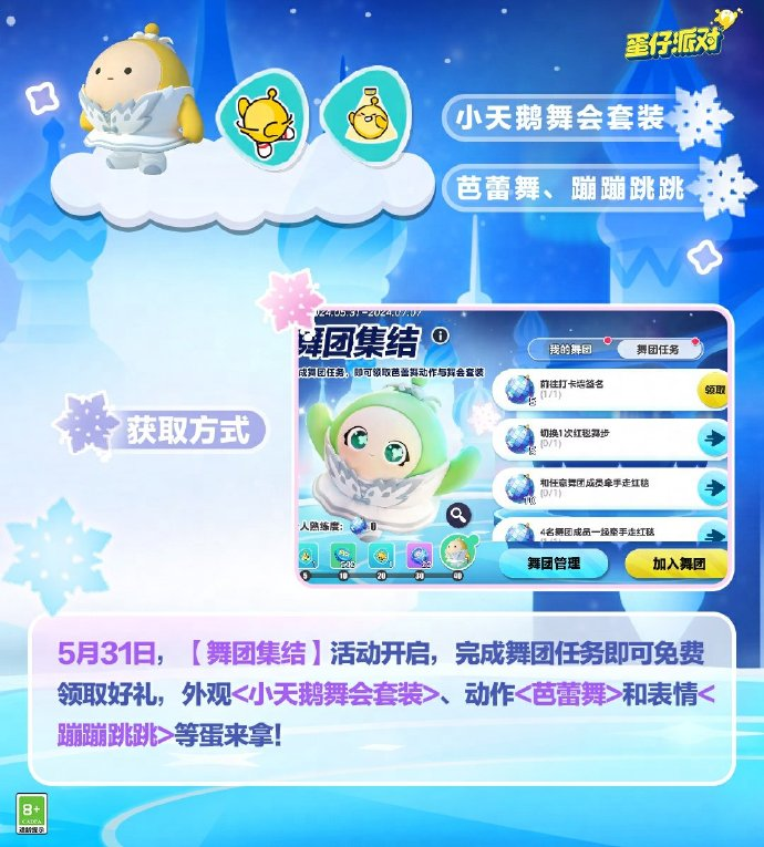 【舞团集结】活动限时来袭,完成舞团任务即可免费领取外观<小天鹅舞会套装>、动作<芭蕾舞>等福利~