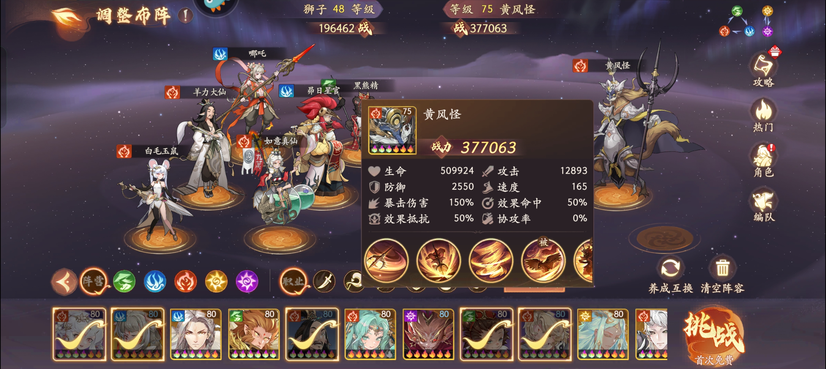为什么拿【黄风怪】测试呢?因为黄风怪和如意真仙同为妖阵营,不存在克制关系。也不存在被克制的关系,这样计算出来的伤害是靠谱的。
