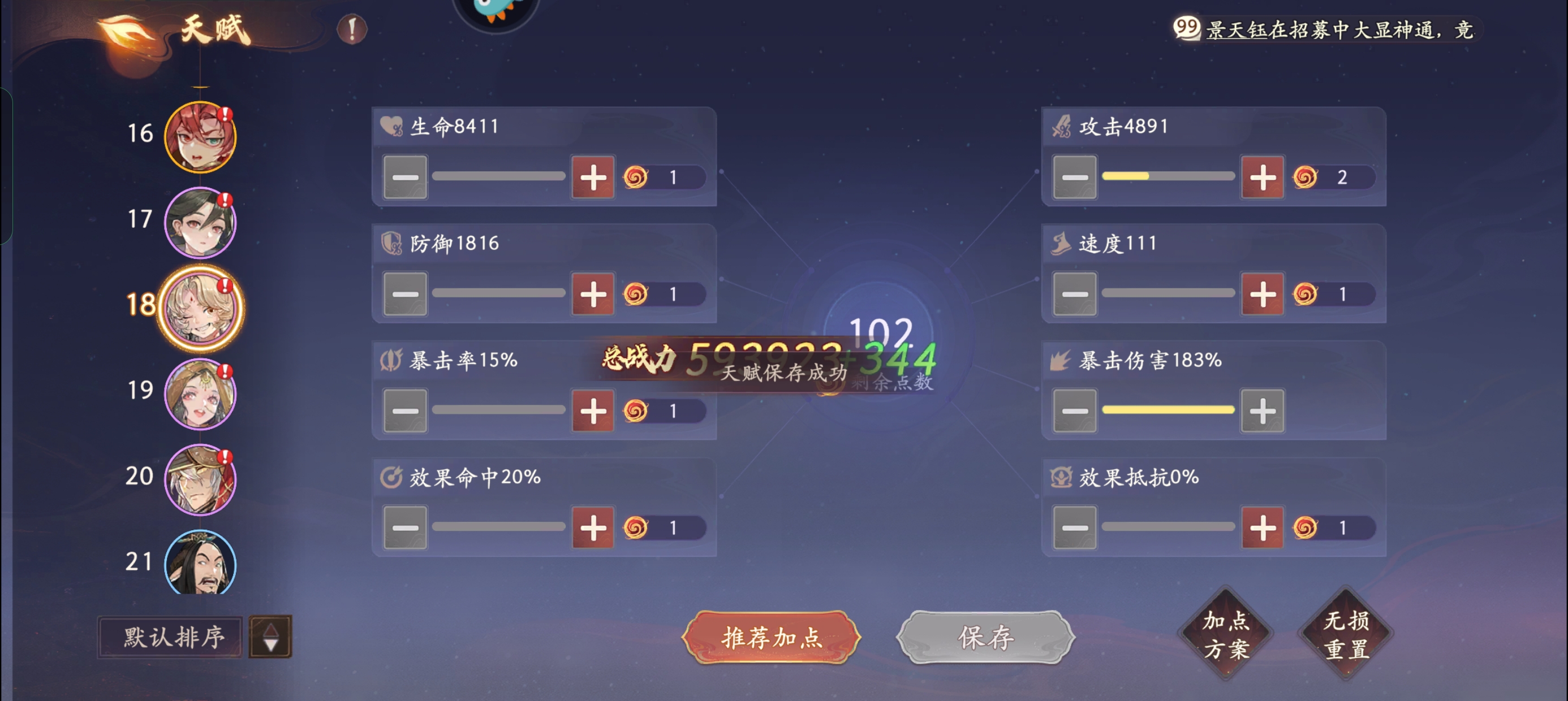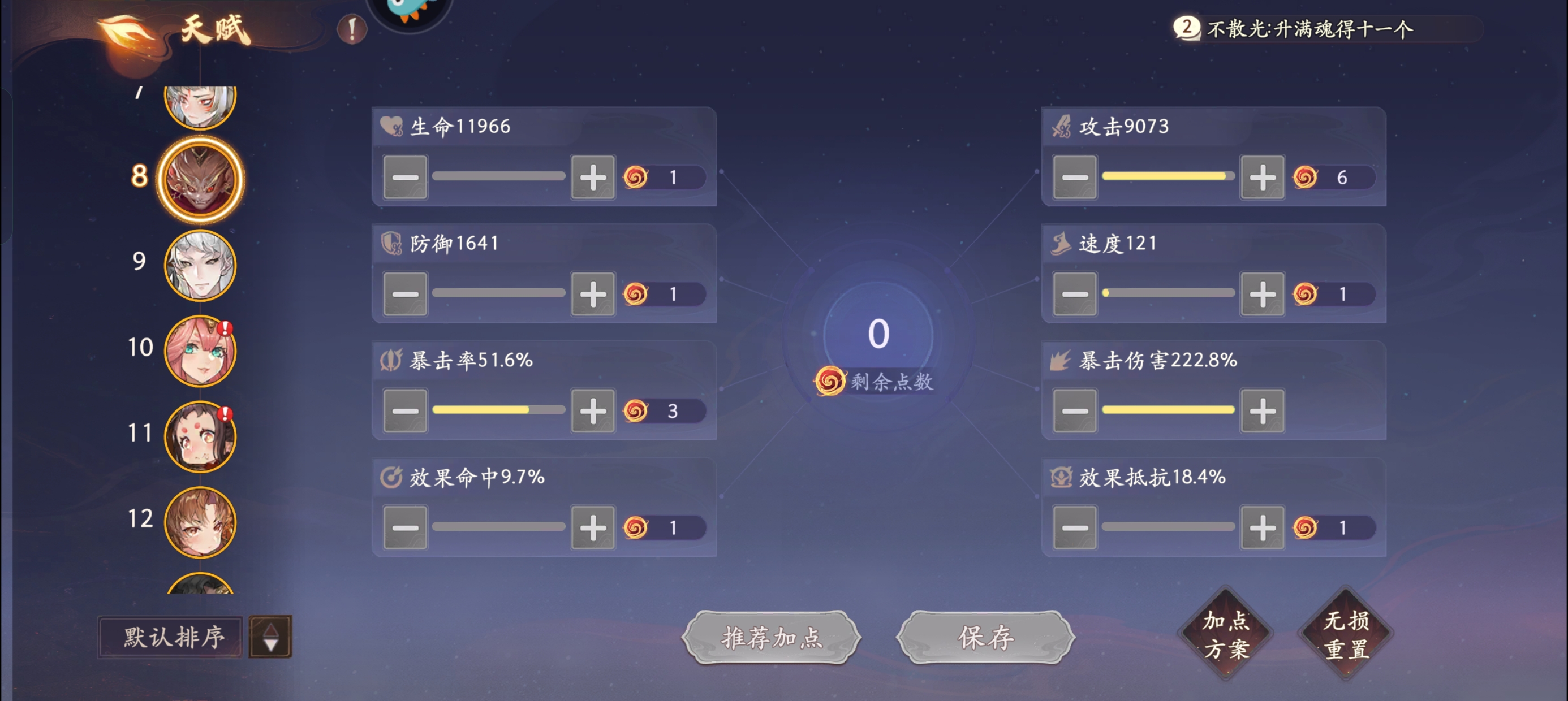 天赋加点:攻击和暴伤拉满。这个天赋加点后面不会改变。