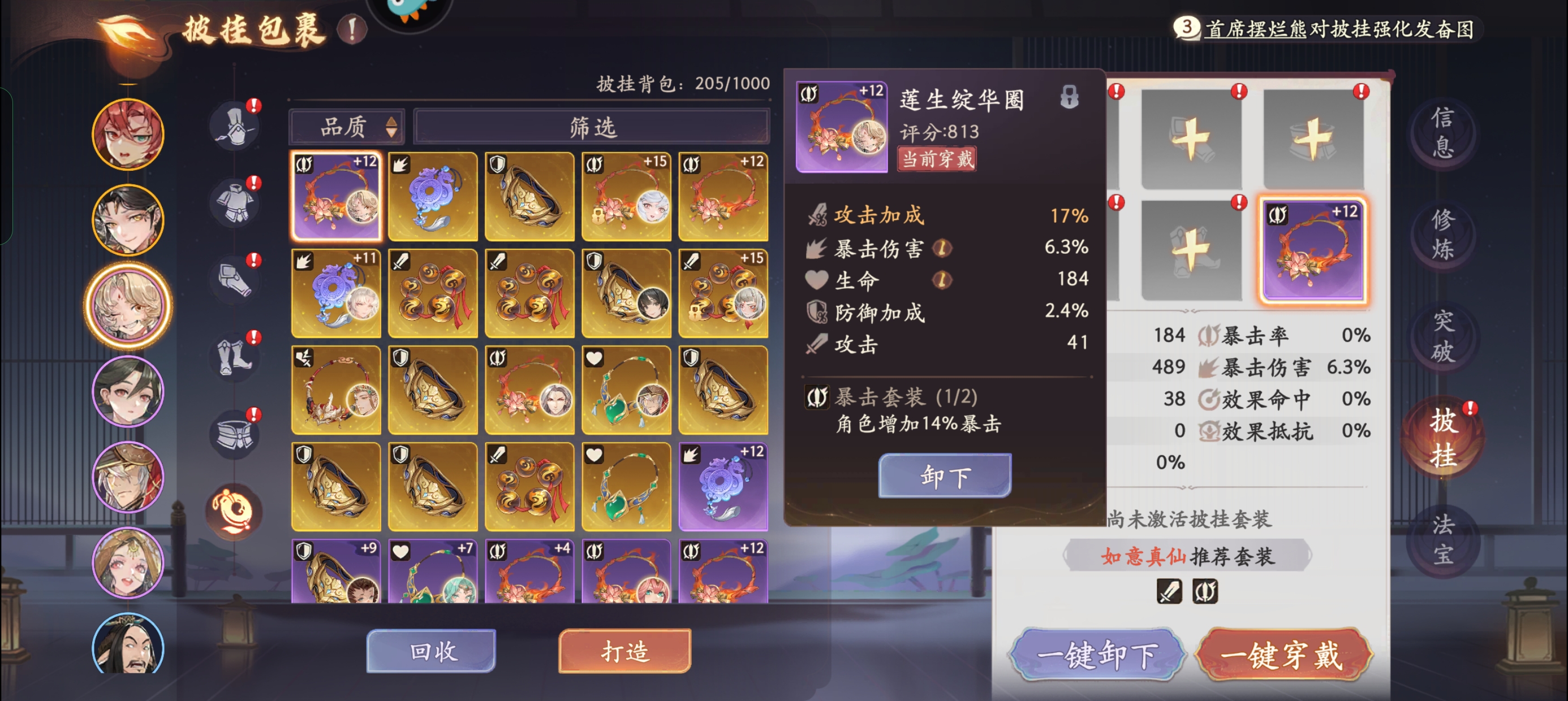 狮子把【如意真仙】爆伤套换成攻击套。