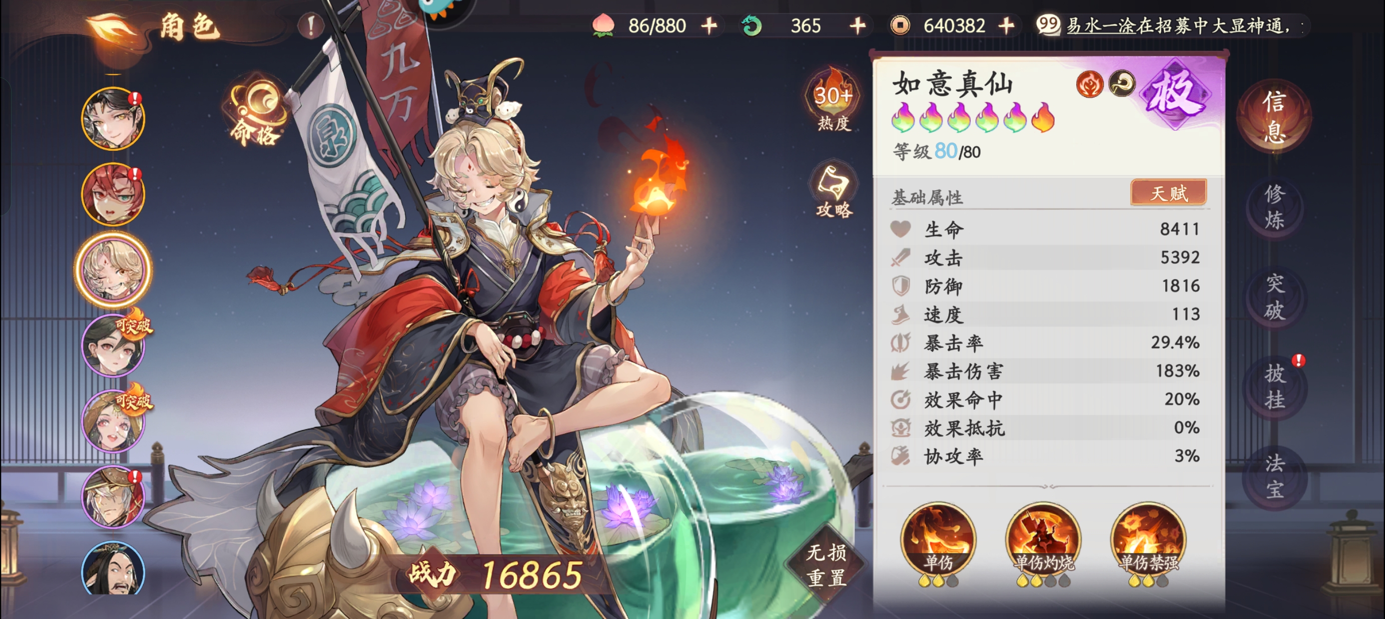 不错喔!普池出二郎神和狐狸。欧皇! 可以刷命格材料。就是上面那些特殊命格。 哪吒可以用爆伤+暴击。
