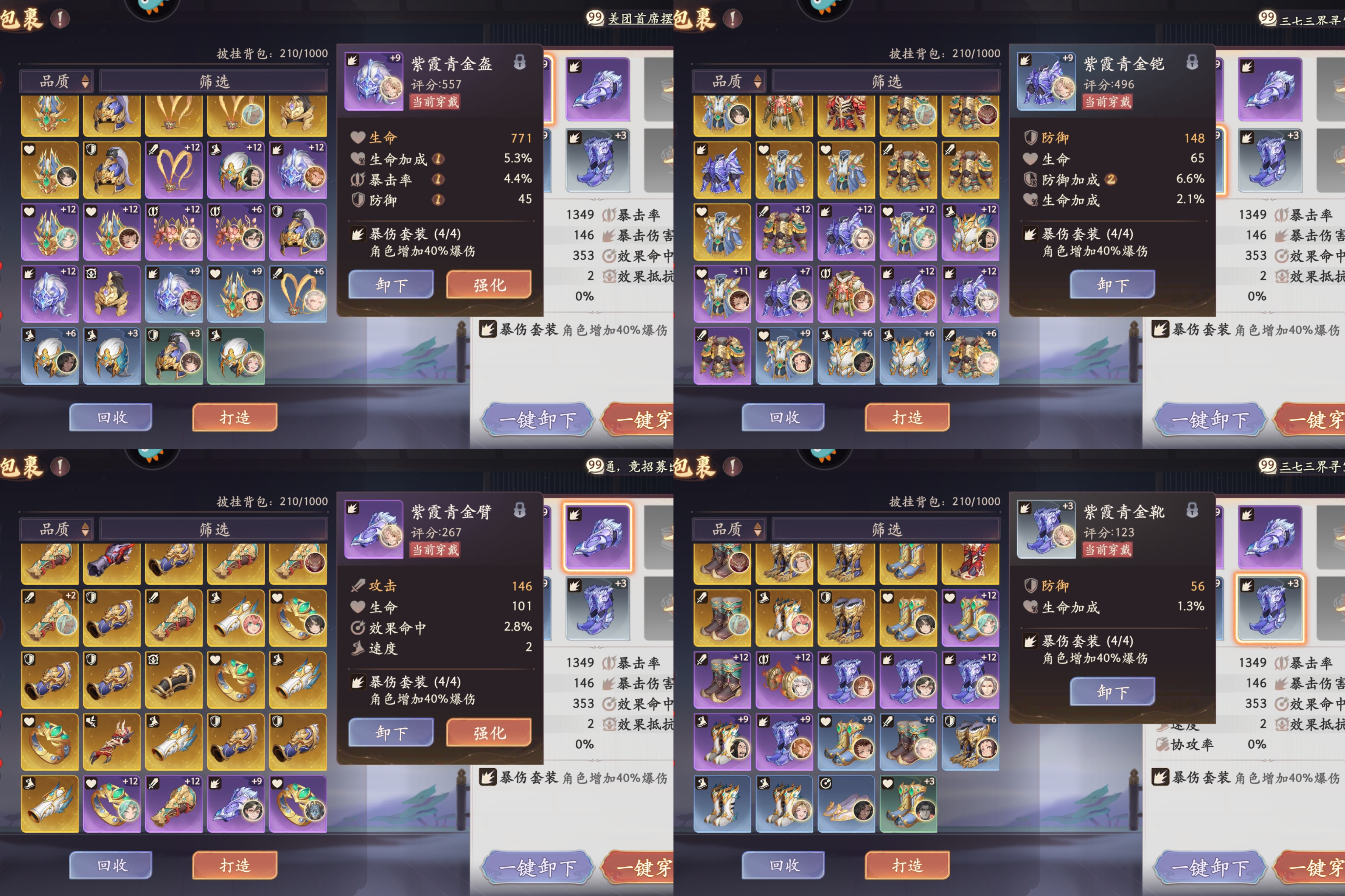 ⭐穿【4件白板爆伤套】提供40%爆伤加成。以下爆伤套,随机词条都不提供额外的爆伤和攻击,只有手套主属性提供基础攻击加成。