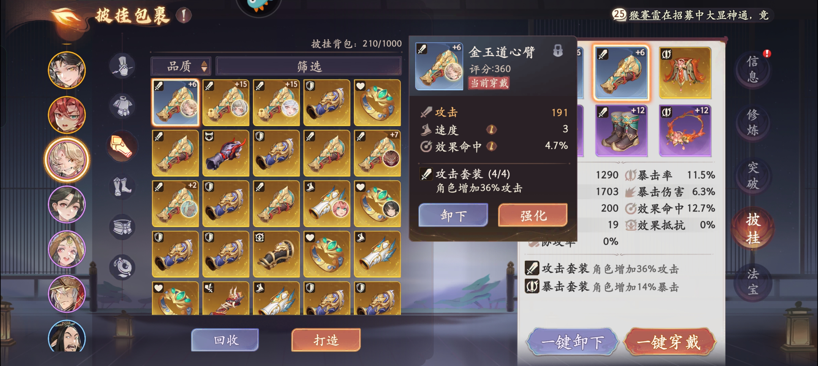 换回【暴伤套】。算上手臂主属性141点攻击加成。
