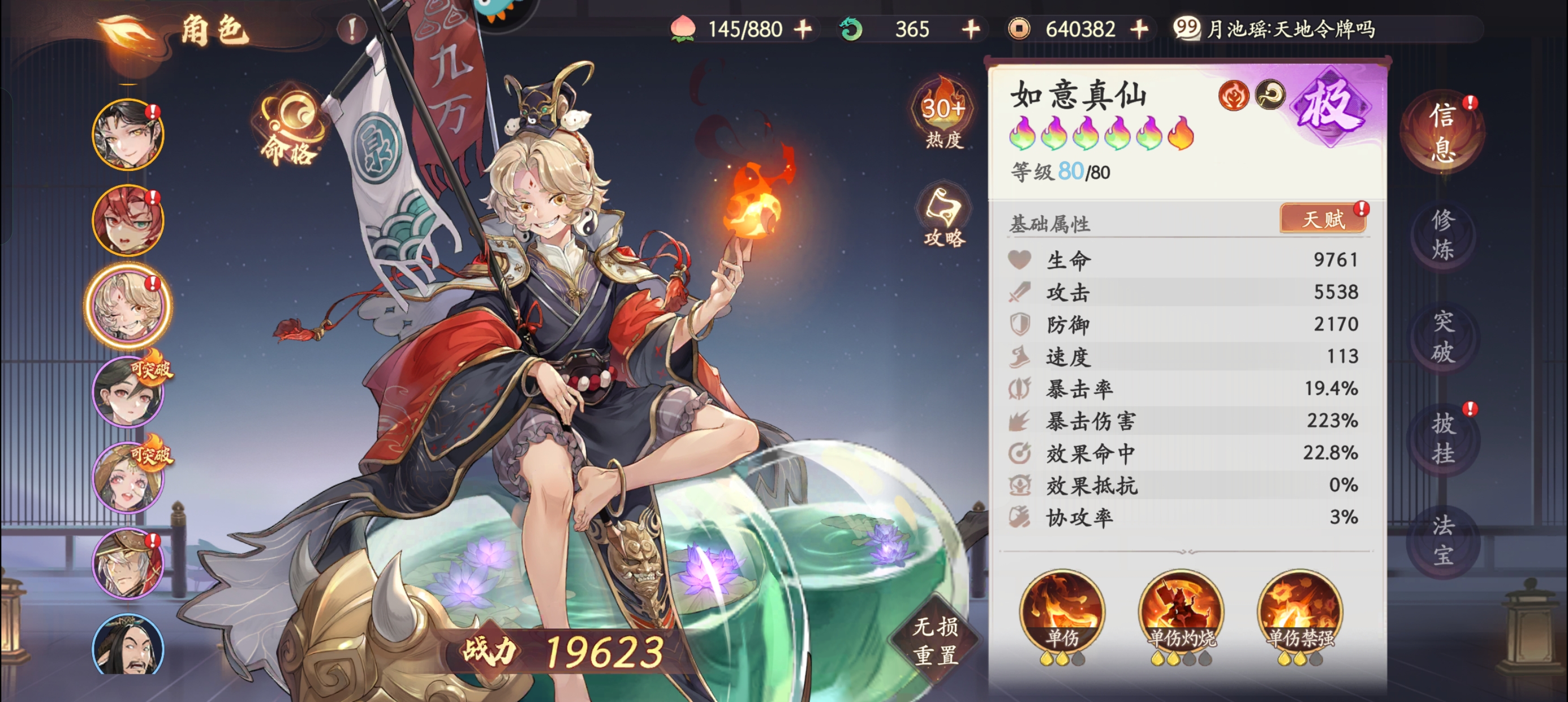 狮子拿单体伤害的【如意真仙】来作为本次的测试,因为单体伤害测试起来比较简单。