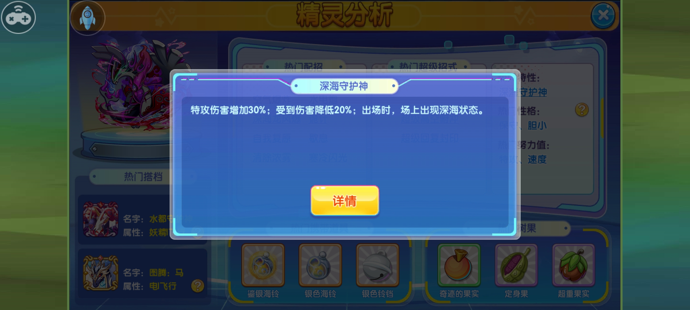 B 深海龙风暴:120威力龙系特攻技能,攻击后获得水帘防护状态。具体解释就是,用水属性技能打克制的精灵,更疼了。被对面用水抵抗的属性攻击,更不疼了。获取途径:单笔充值648
