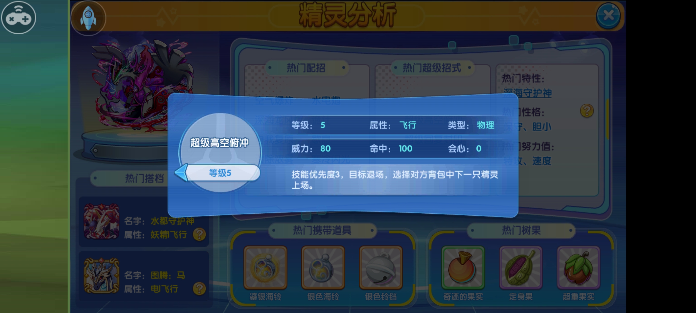 超级高空俯冲:当成超龙尾使用,只可惜新版洛奇亚为特攻精灵,此技能也只能当成逼退手段