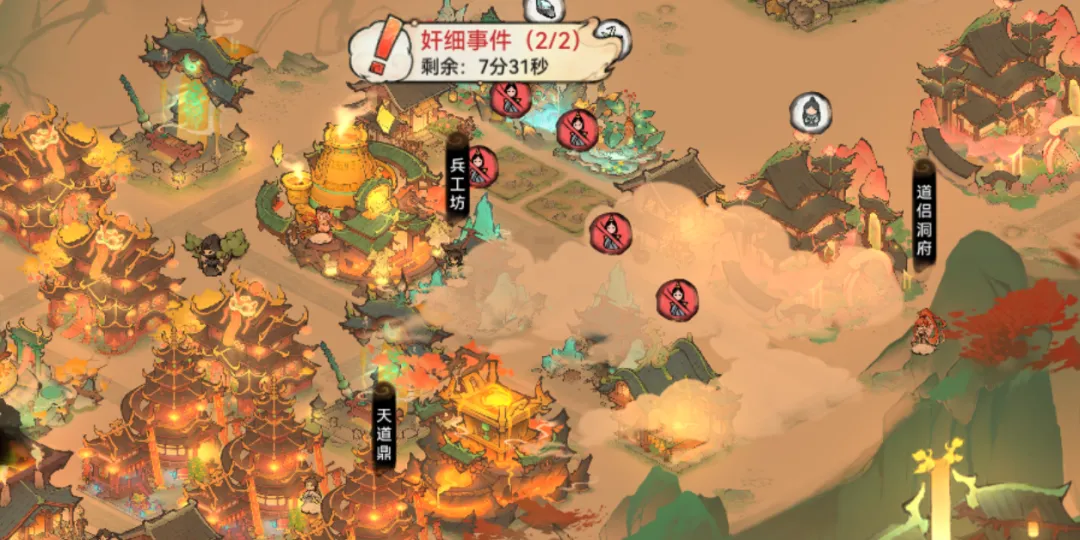 在新版本中,宗门内会随机触发奸细事件,如果不能在一定时间内找出奸细,山门大阵将遭受到破坏。