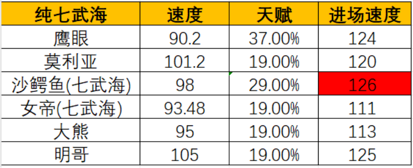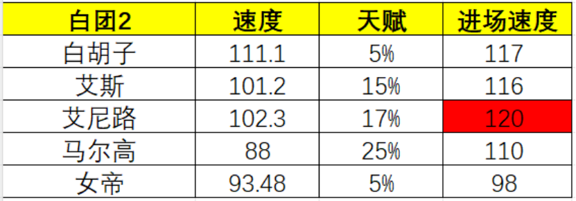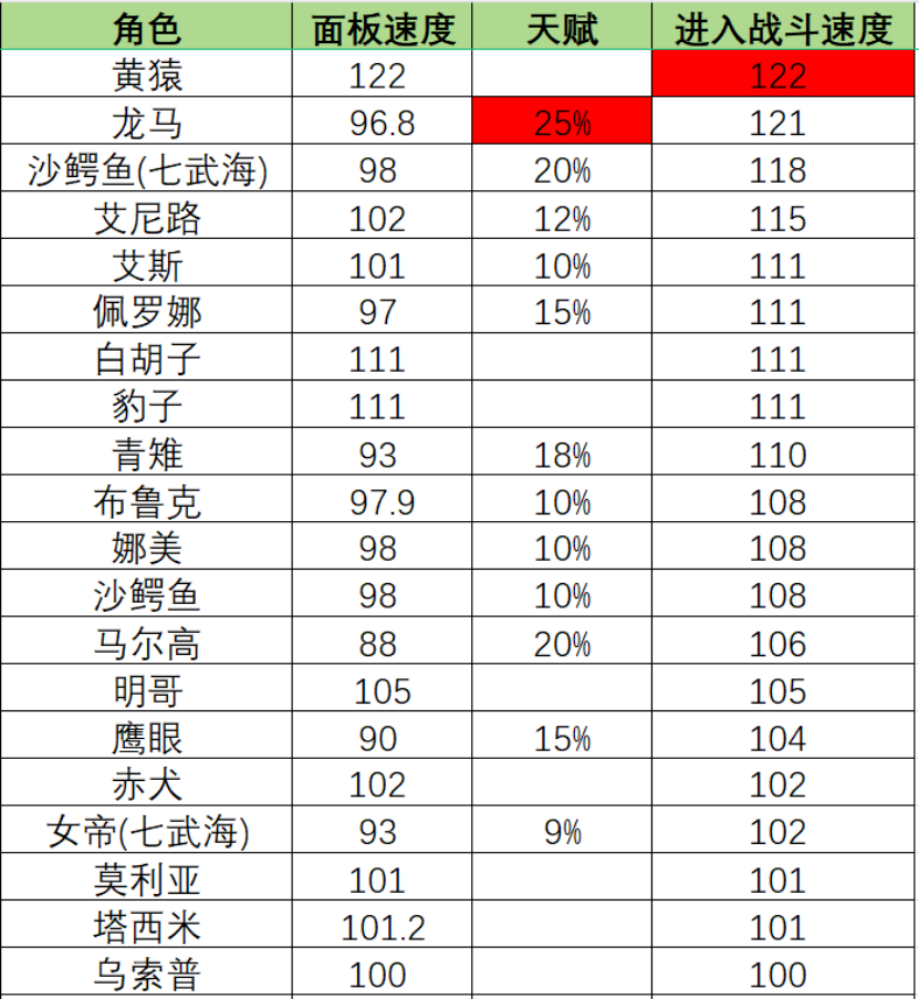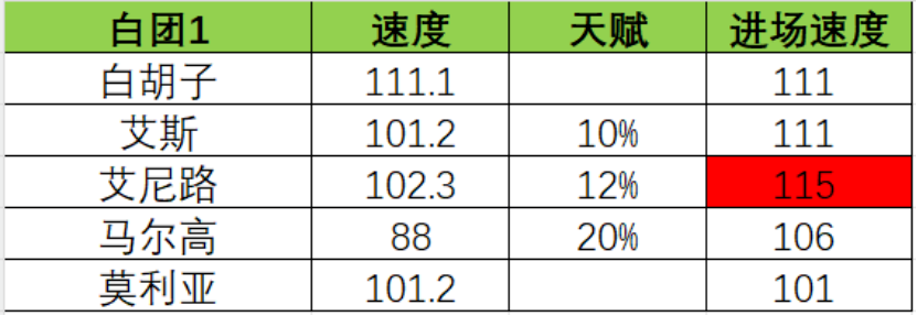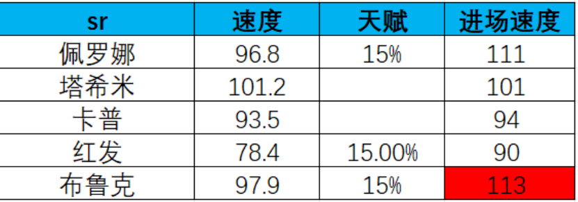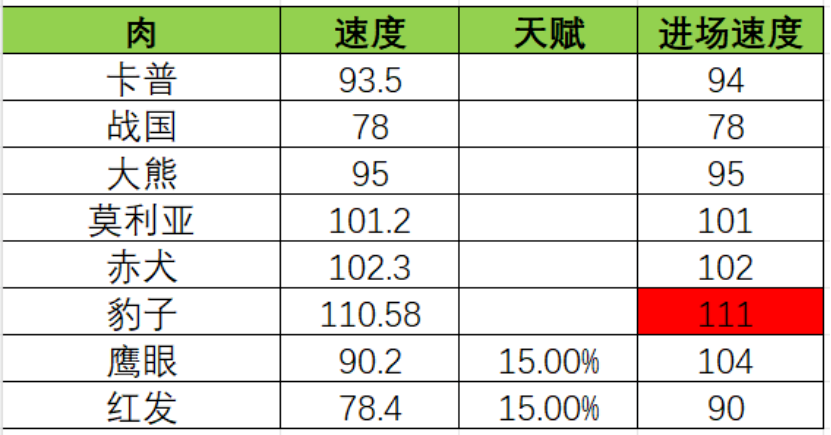 总体的思路就是,练度不够套路来凑,当然大佬也可以全满编队,什么强上什么。另外再给大家说一下,3v3目前这个阶段,角色速度和天梯是不一样的,对于卡牌游戏需要抢先手来说,速度对胜负的占比是非常大的,特别是内战的时候,这里也提供一下数据大佬Monkey提供的速度统计表,大家可以酌情用于参考。