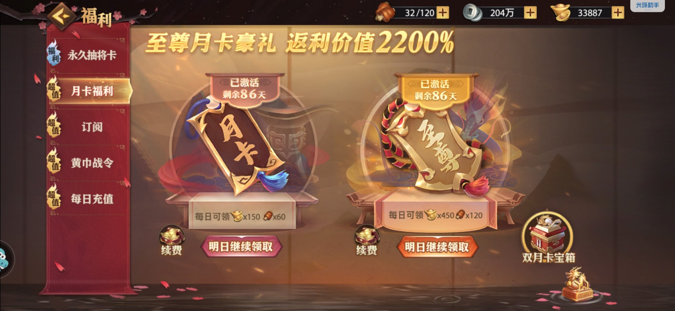 性价比之王,双月卡,元宝+体力双重赠送,还有每天的双月卡宝箱。