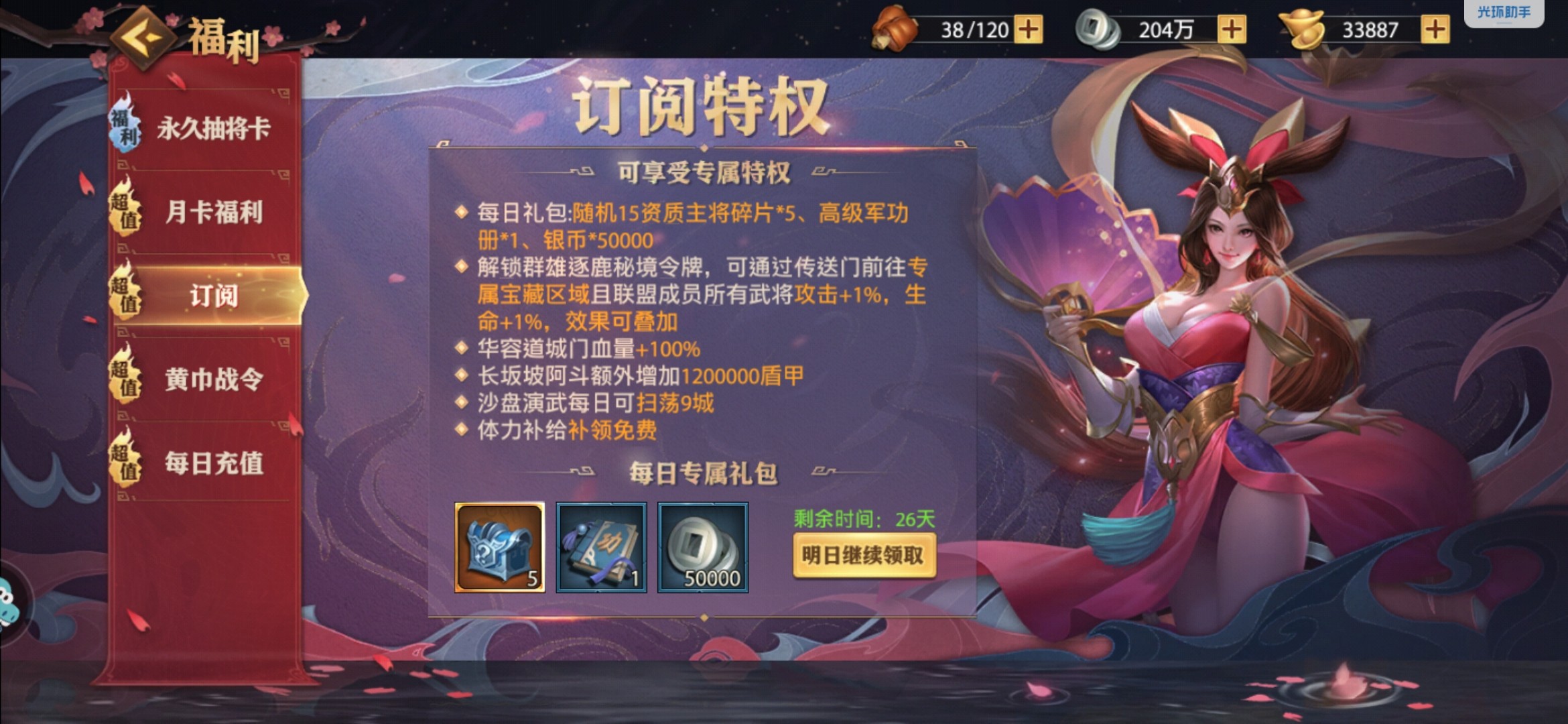 328元充值(三星马超)=双月卡(充值两次)+订阅+六星黄忠