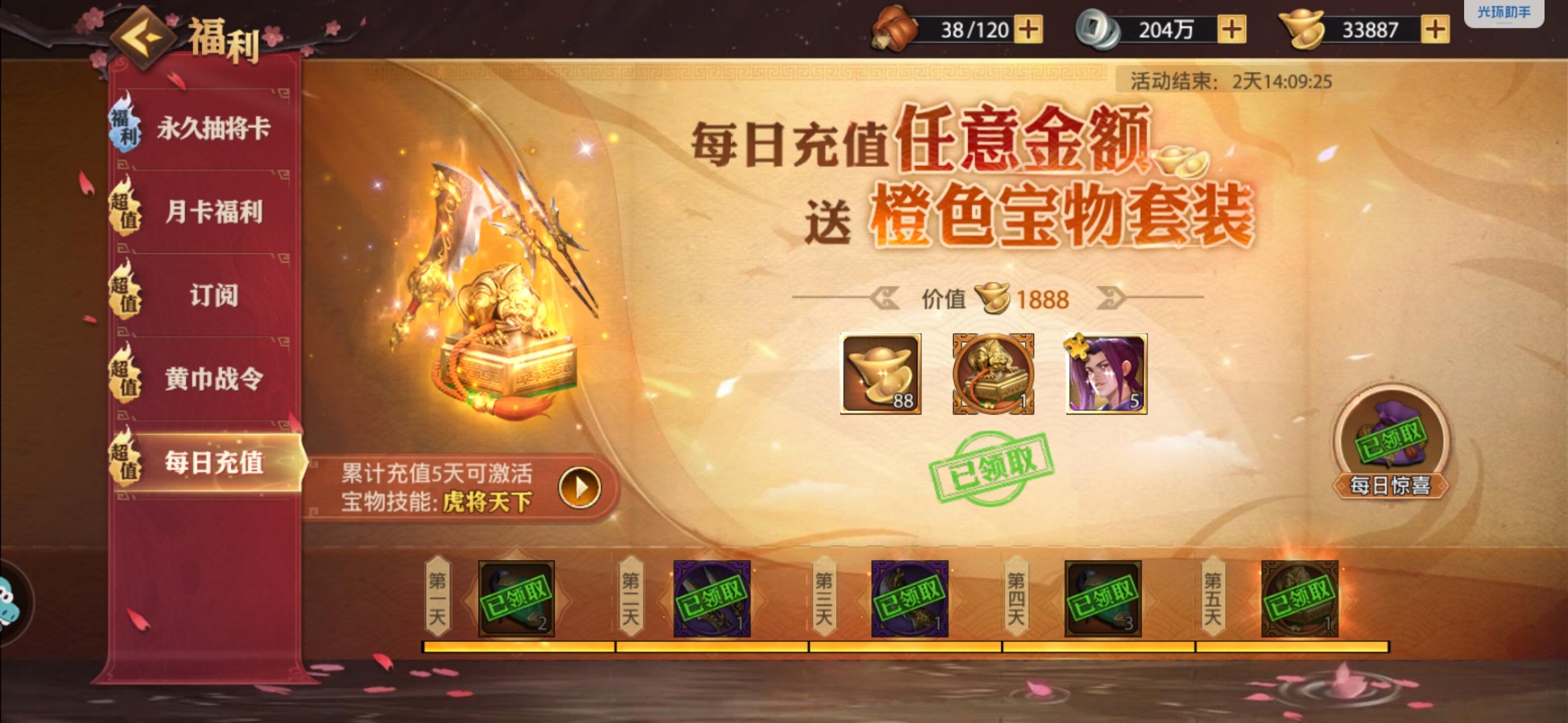 开服会有每日充值活动。连冲5日任意金额,每日会获得一定程度道具,为什么我这里特意说明是第一次每日充值,原因是月卡分两天冲满足两次充值,订阅一次满足一次充值,五次充值就差两次就可以获得每日充值的终极奖励。