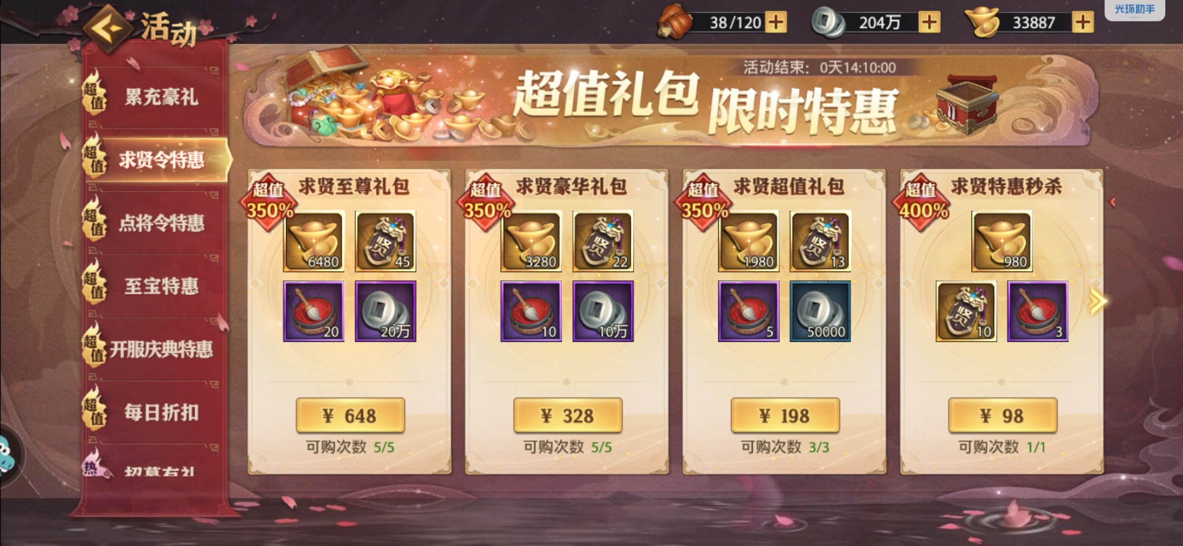 NO.7特惠活动(求贤、点将、至宝、开服庆典)