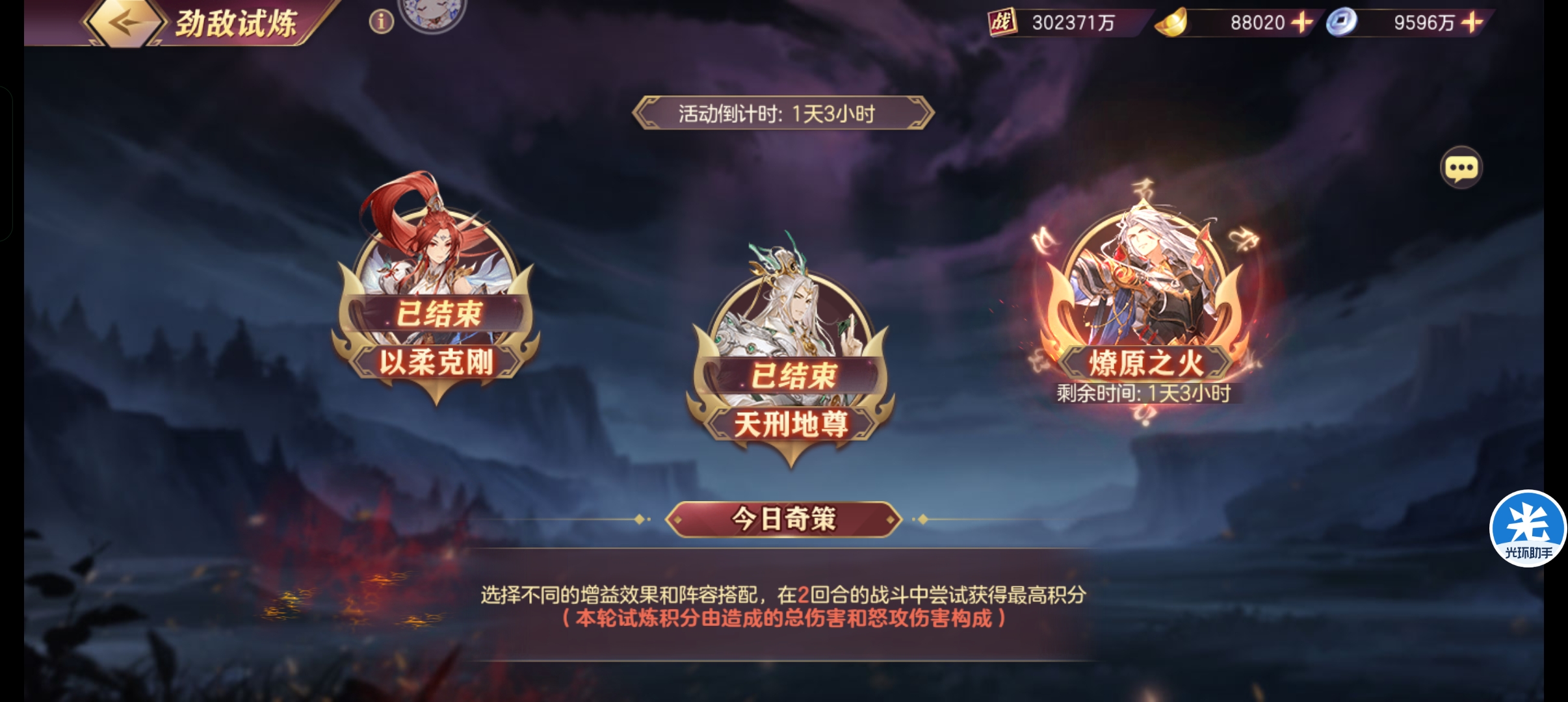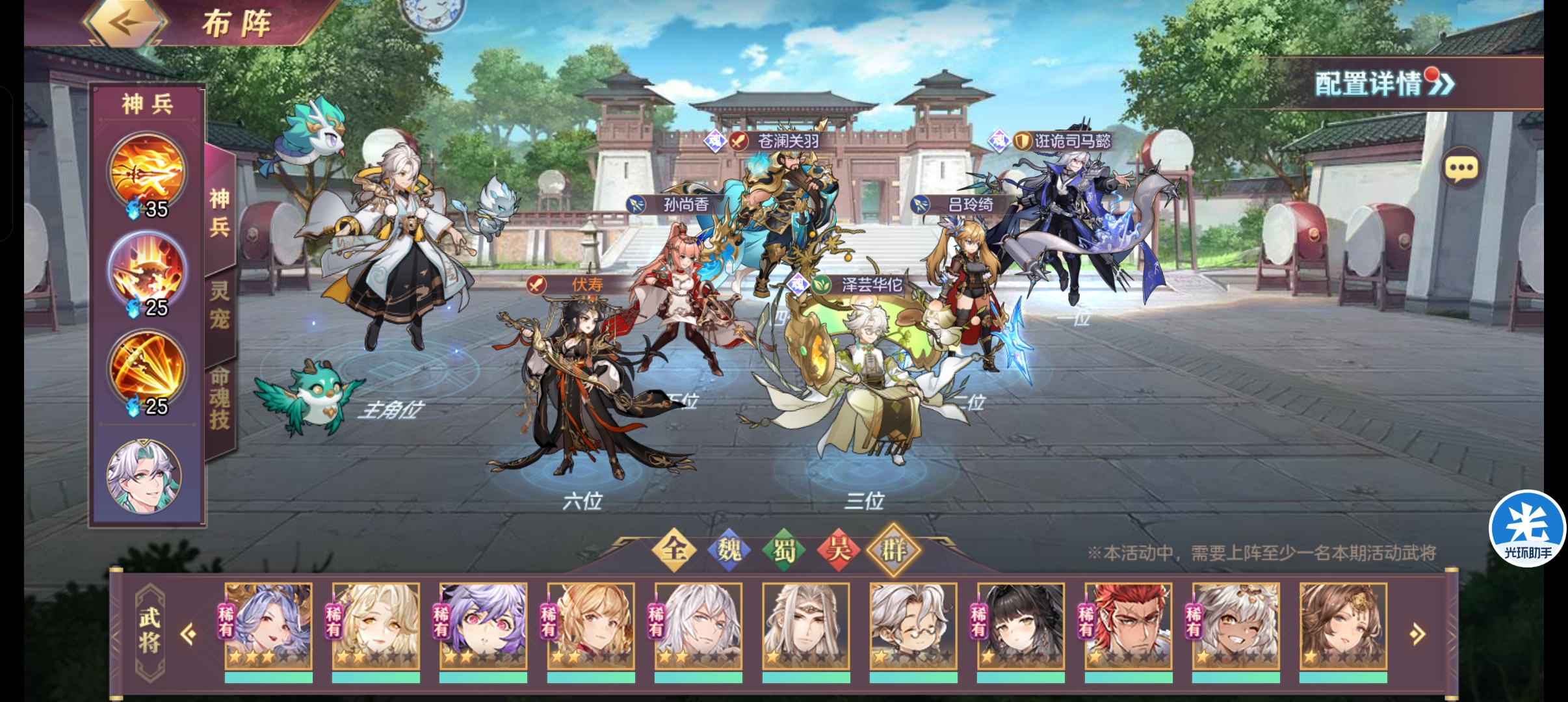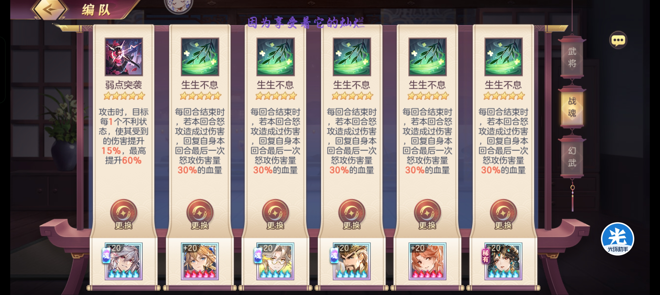 辰星祈愿之劲敌试炼取向心动发布于 2024-06-02关注前言 本期带来辰星祈愿第三期燎原之火刷分攻略,阵容基本上是老一套阵容及搭配 技能选择如上七个:攻击提升、暴击提升、命中提升、最终增伤、主角气势提升、爆伤提升和龙魂之力 阵容是老一套:狂诡司马懿、吕绮玲、泽芸华佗、沧澜关羽、孙尚香和福寿 魂将羁绊如图 带五生生不息以及一个弱点突袭专武随意,可不带