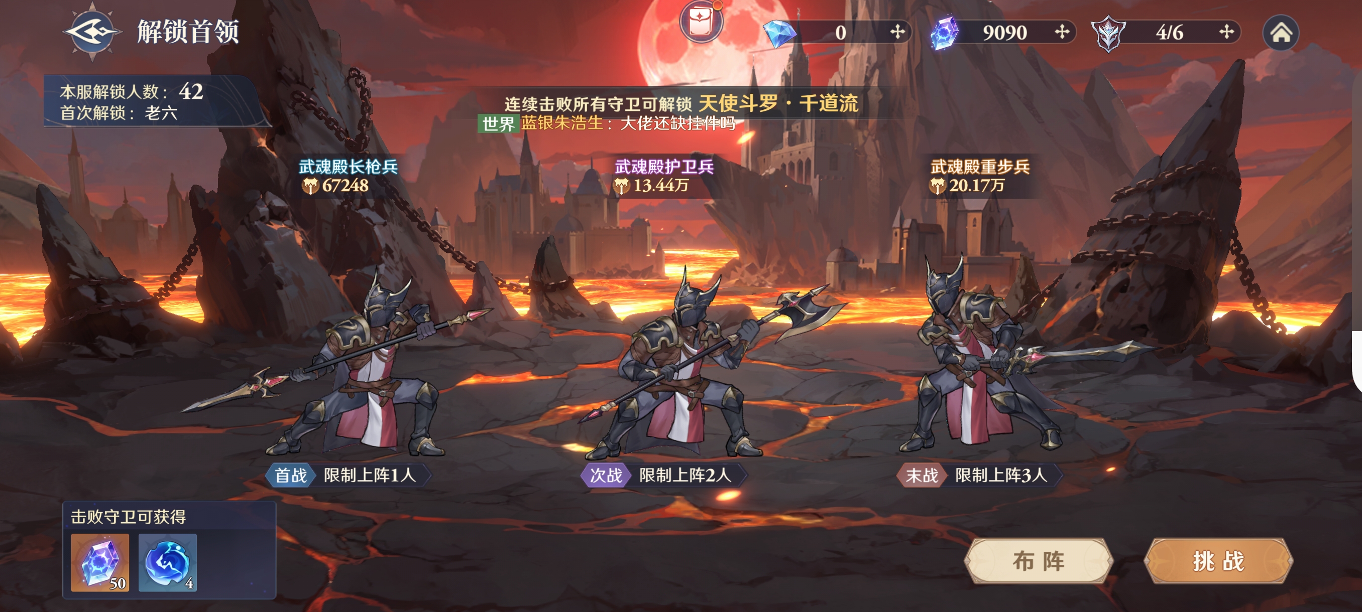 挑战守卫至少得有总战力40W战力,对于平民党来讲,普遍在30W战力左右,不氪金的话当前进度基本打不过,可以先等一等。