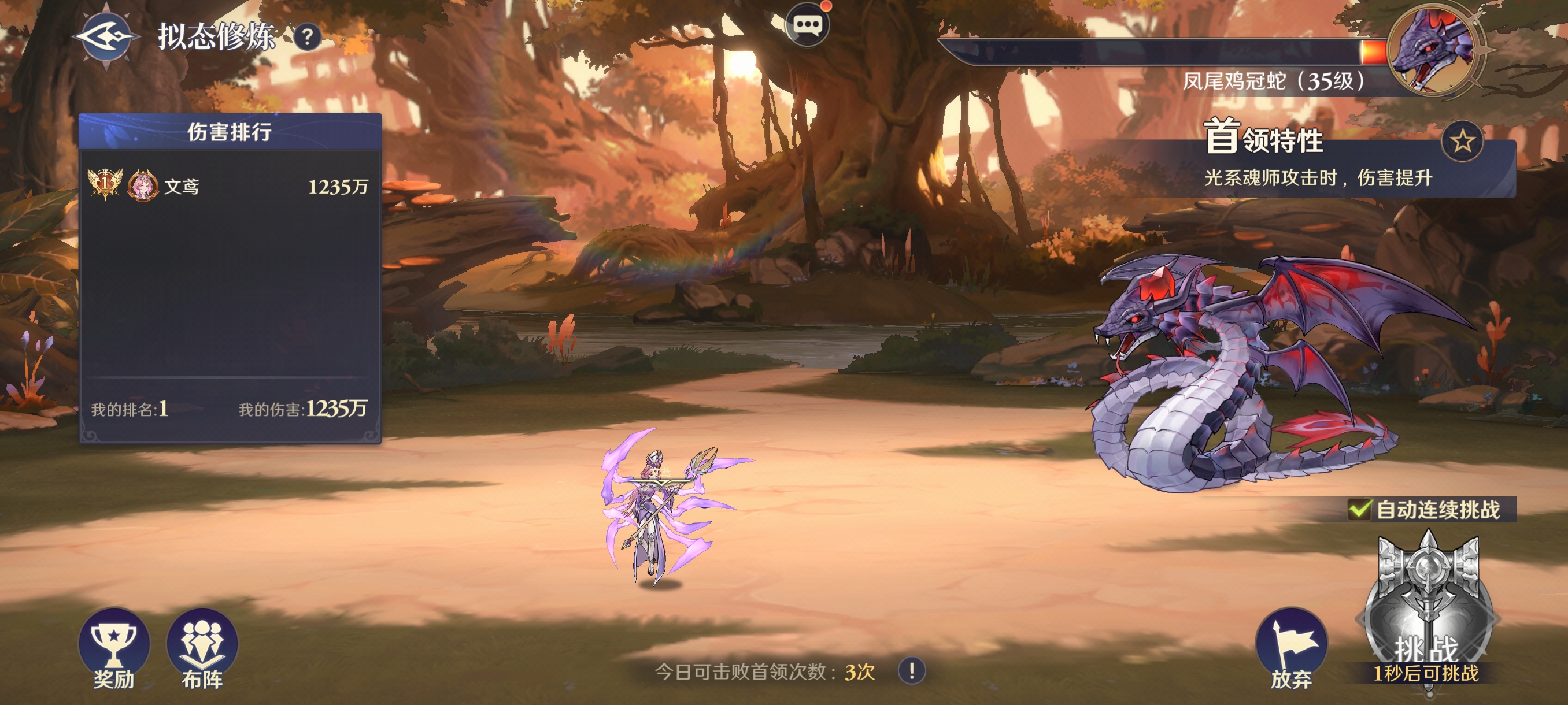 演示35级BOSS单刷血量为1235万,我一把的输出为20W左右,打完差不多需要挂机10分钟左右(相当费时间,不知道公测会不会改,如果没时间的玩家直接混奖励就完事了……)