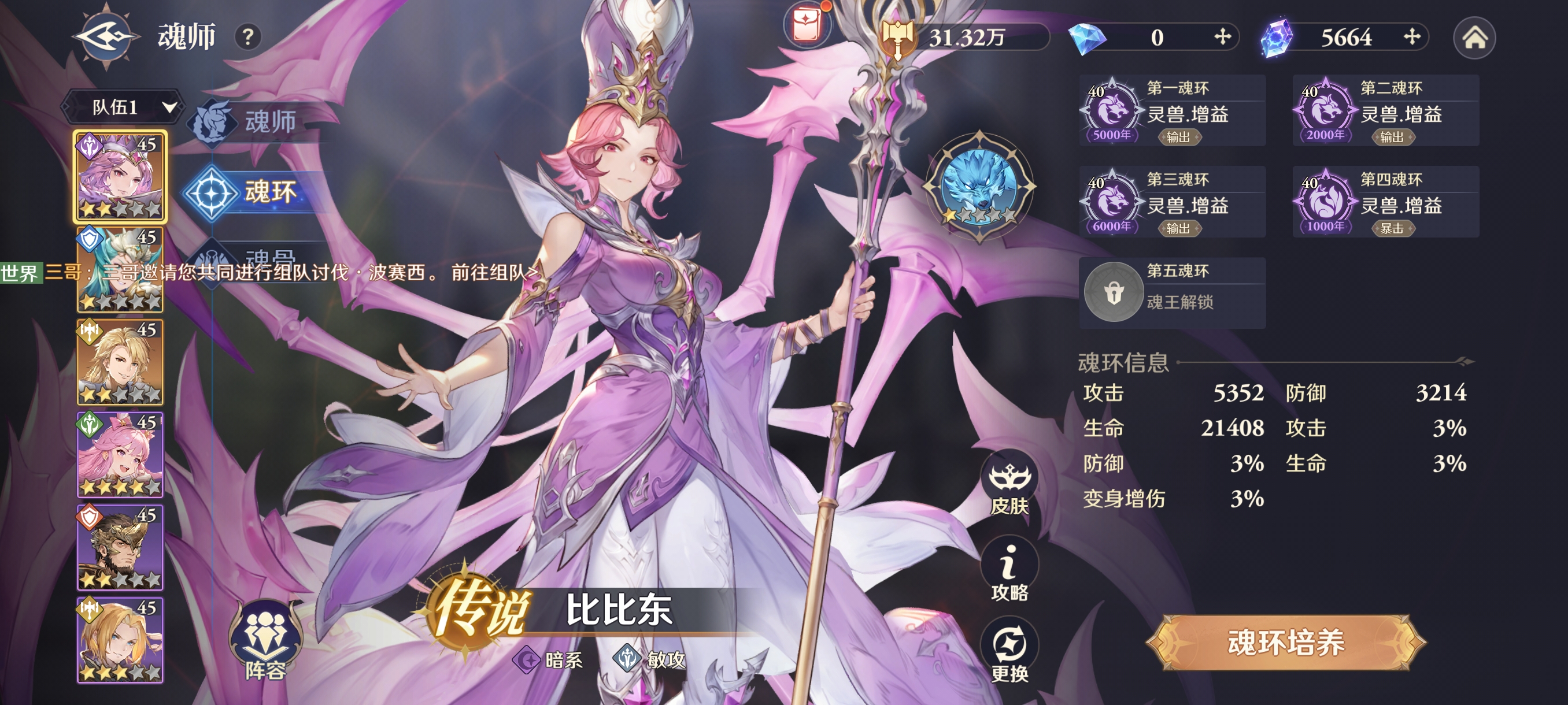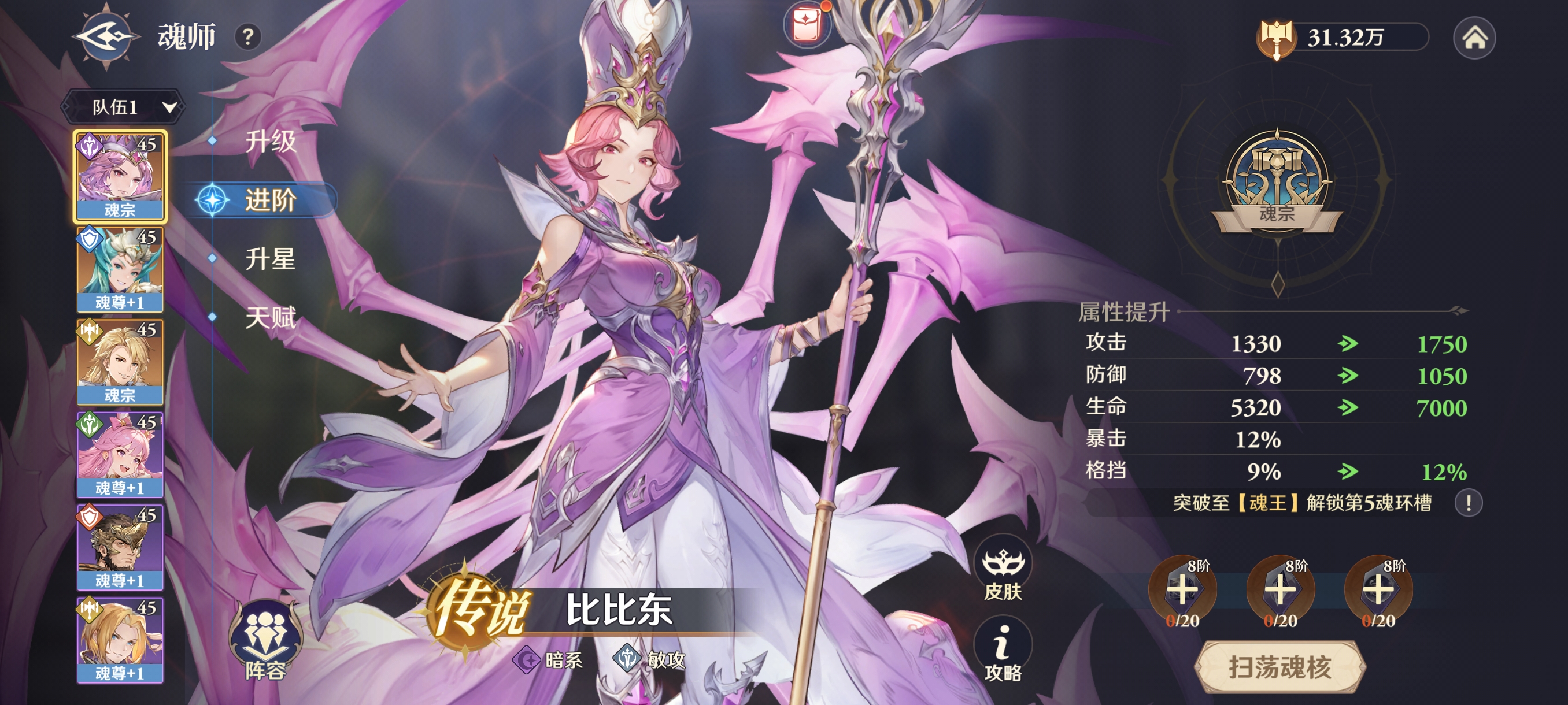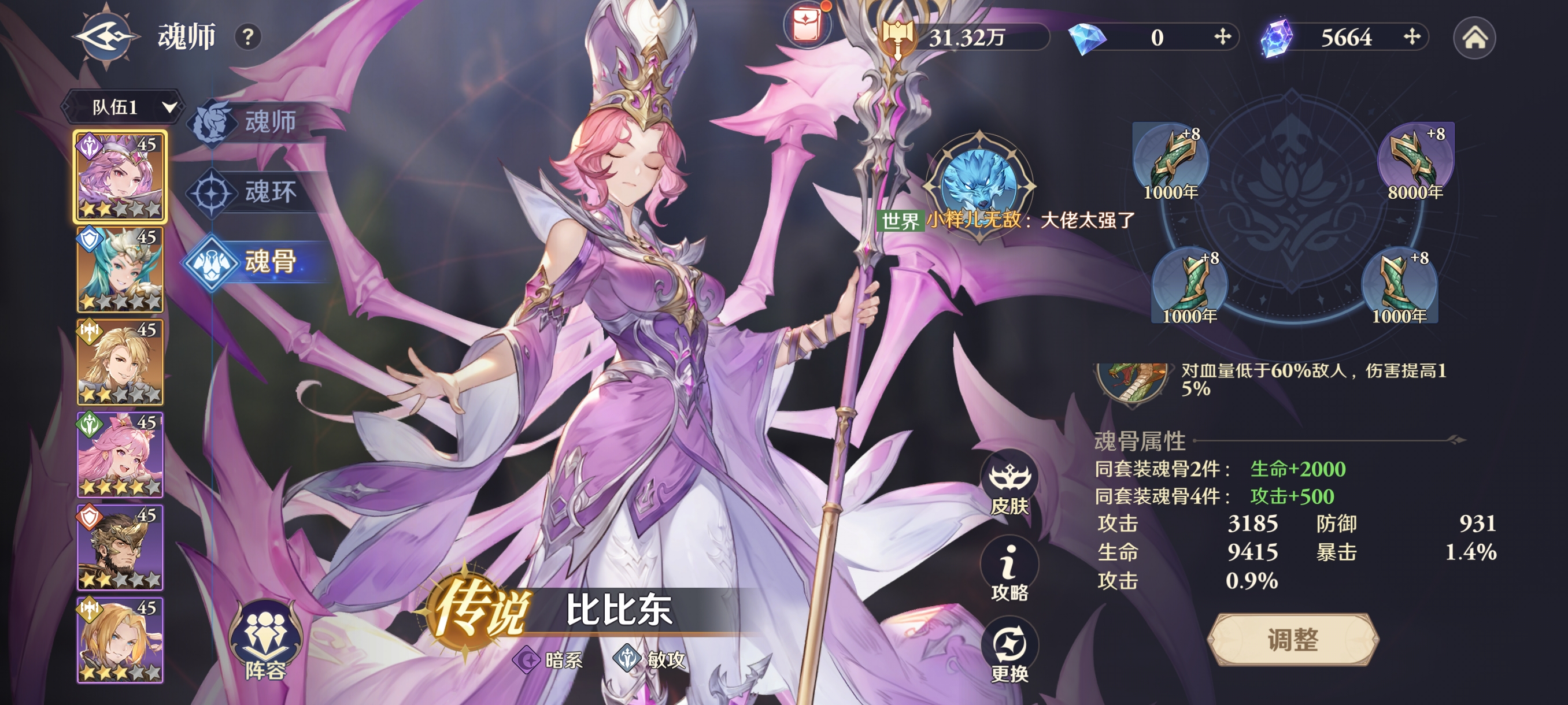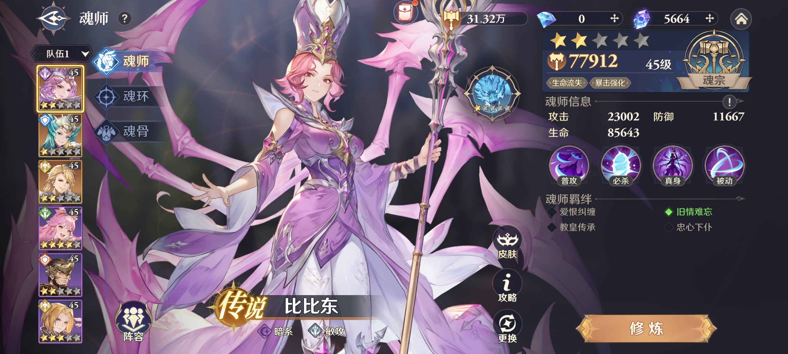 等级41级,总战力31,2人「魂宗」,其余「大魂师+1」「比比东」战力77912