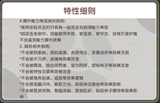 高速立交桥:自身根据对手特殊系统状态切换【通畅】或【堵塞】;使用蓄力类技能时瞬间发动没有造成效果很好时获得特攻+1;自身受到伤害减少30%,造成伤害增加30%。