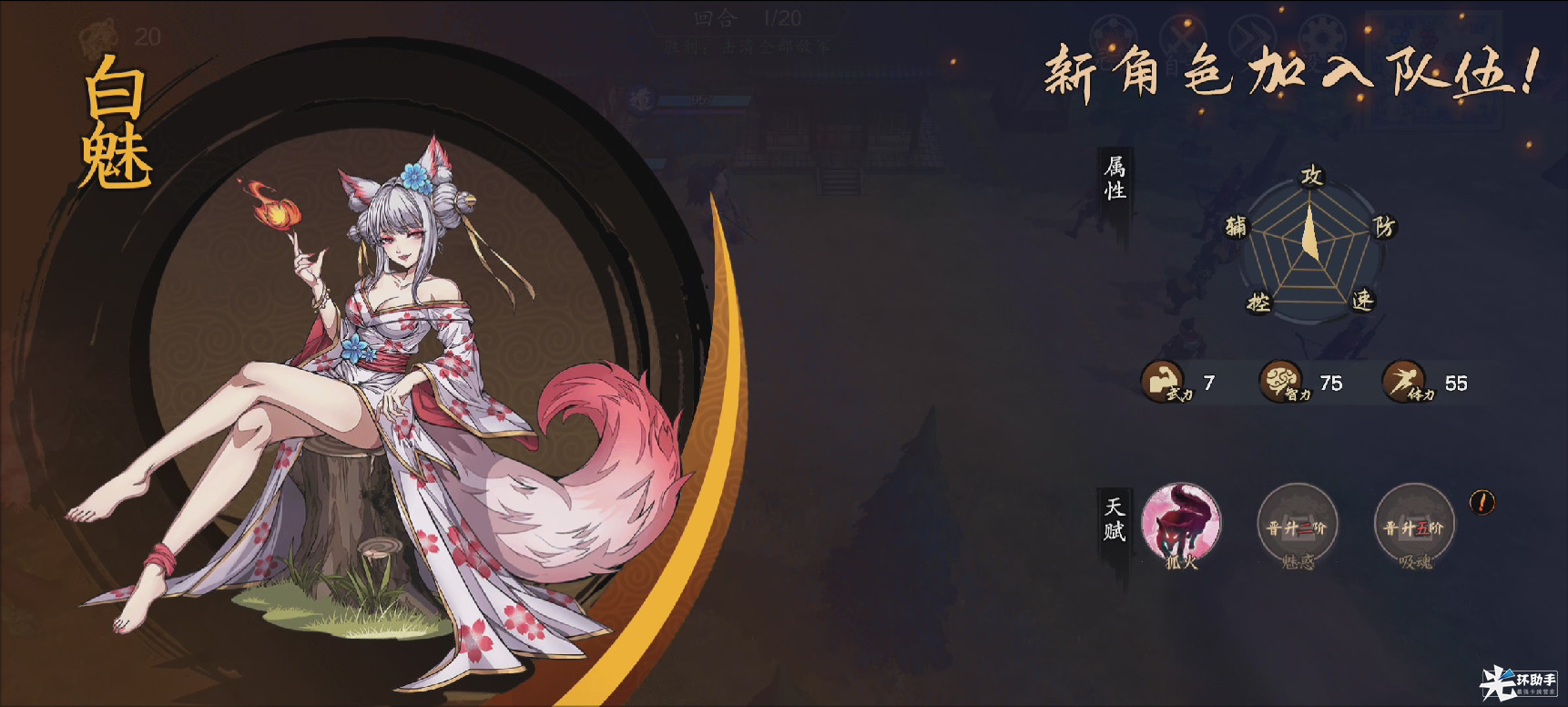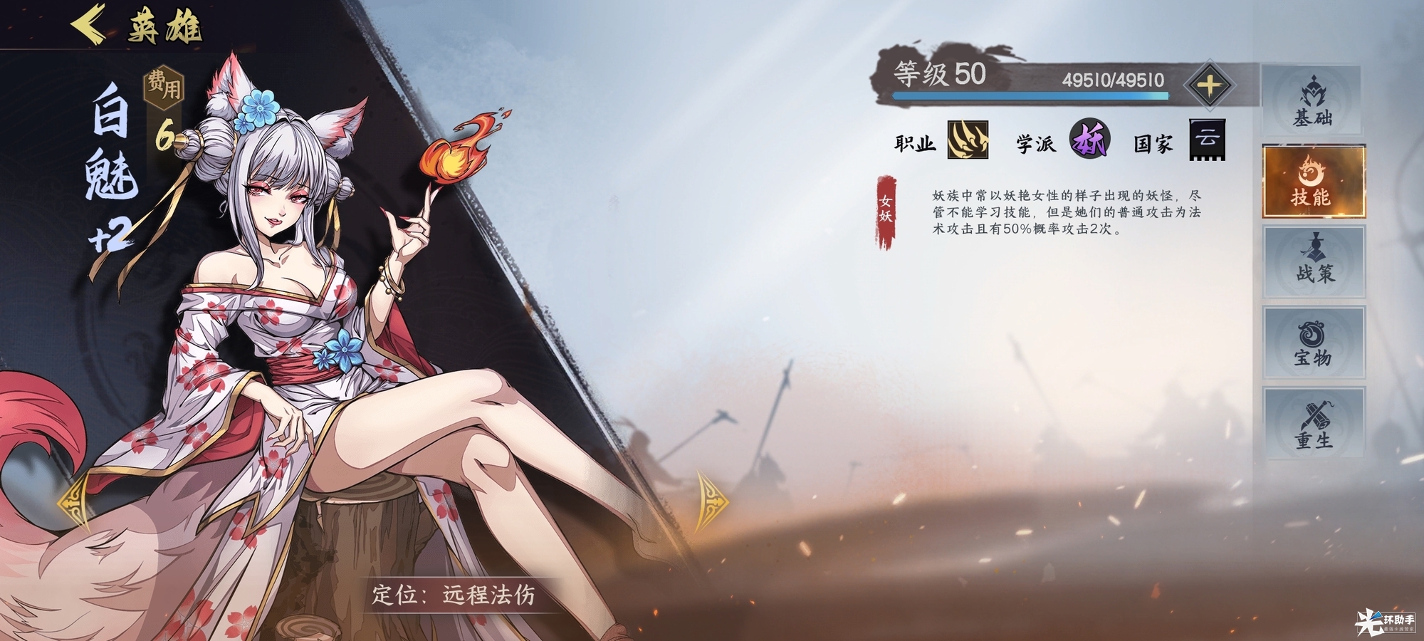 白魅作为妖族,尽管不能学习技能,但其普通攻击有50%概率触发两次攻击,其最大的特点是行动不消耗任何军令