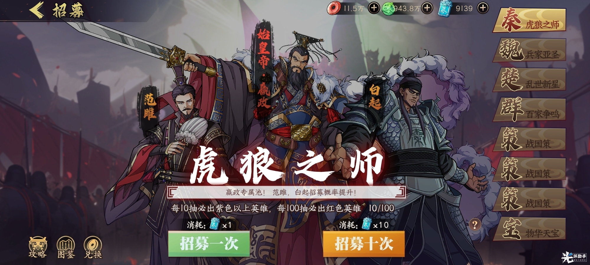 目前英雄池子分为秦、魏、楚、群四个,一周更换一个英雄池子,届时大家可以根据需要进行召唤。