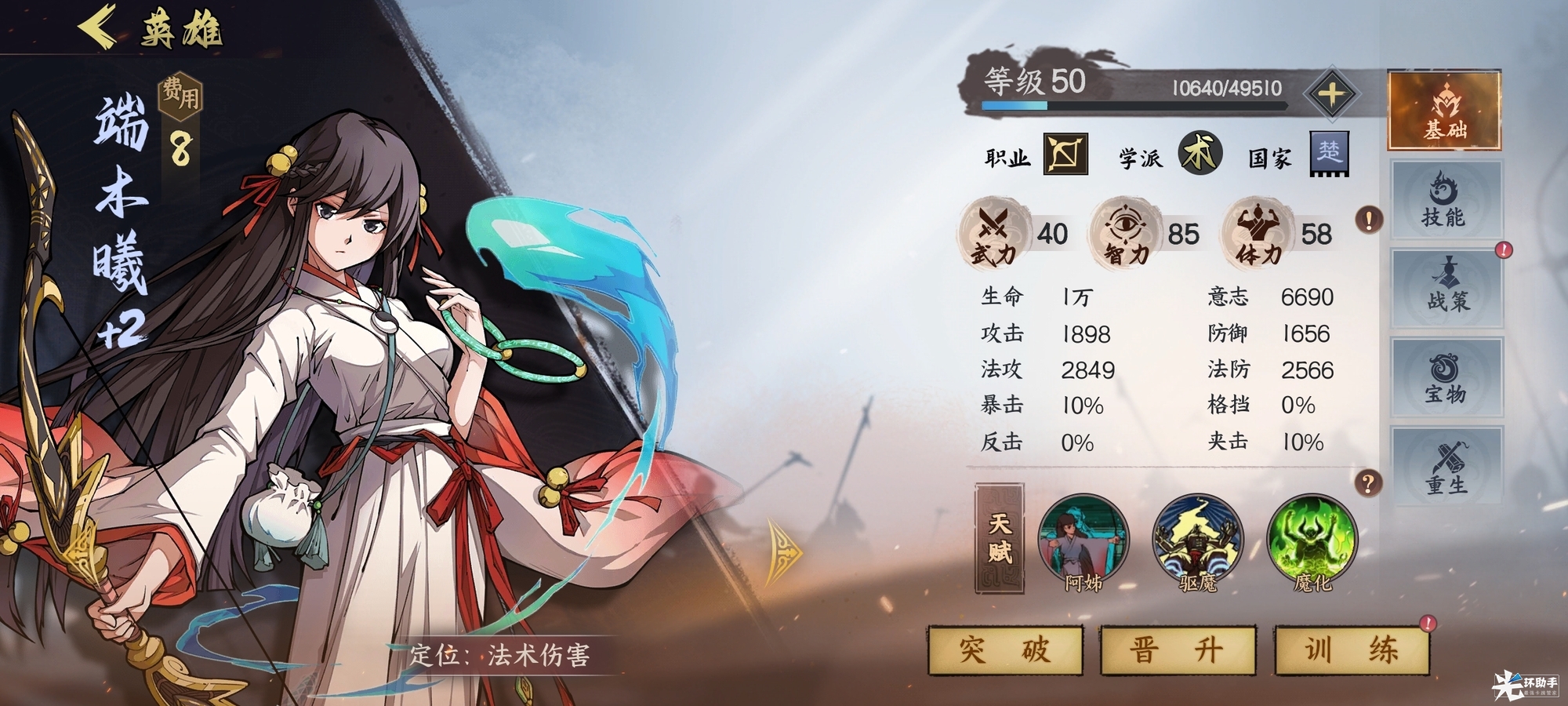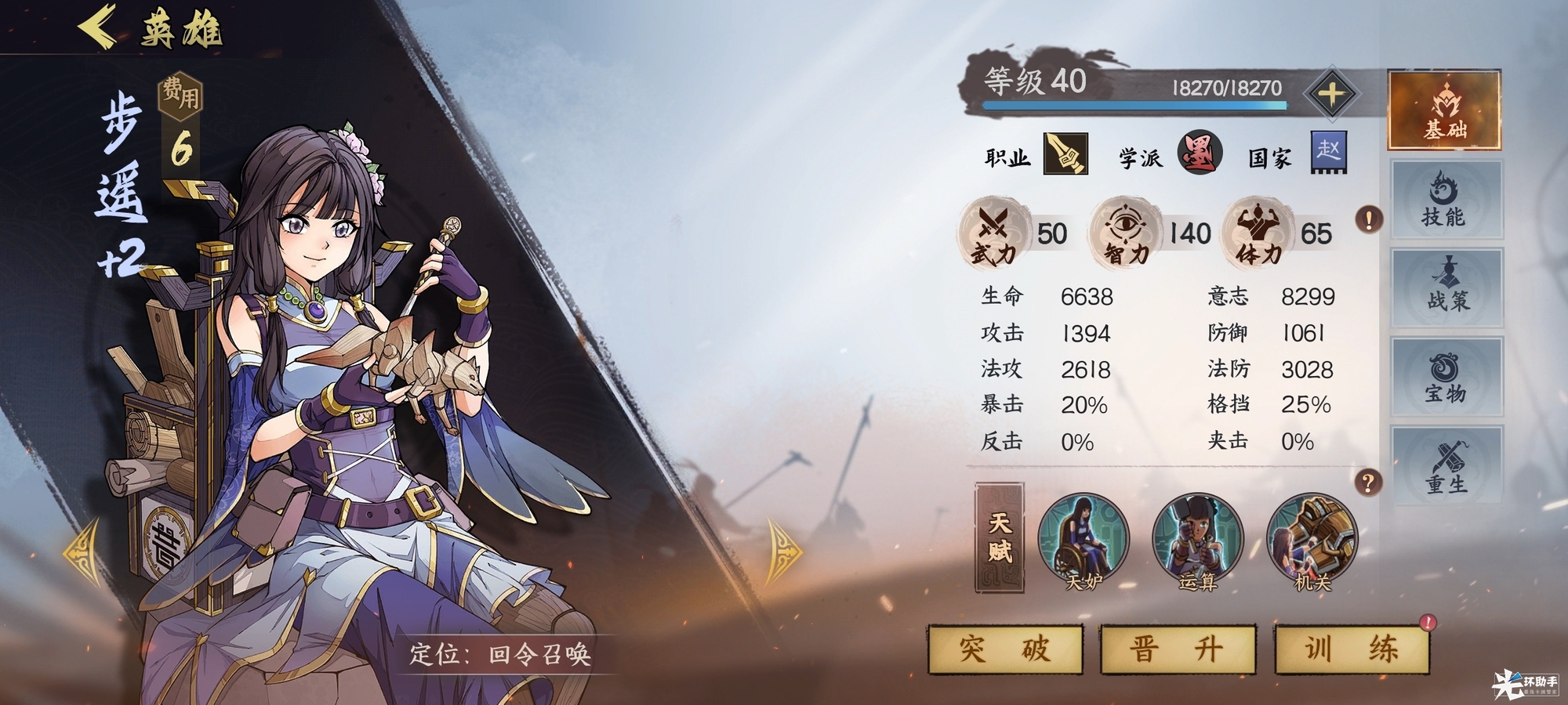 步遥是当前版本辅助中使用率较高的一位,首先其智力属性高,作为给队伍回复军令、辅助战斗的核心之一。