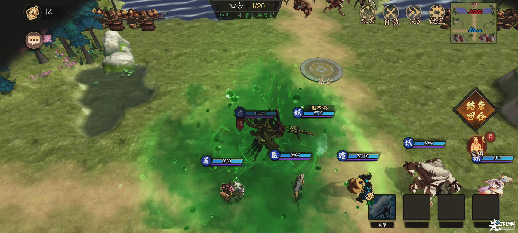 其最大的优势是能变身蚩尤,变身蚩尤的瞬间可同时对周围2格范围的敌人造成自身基础法术攻击100%伤害的毒属性伤害,并在地面留下毒雾效果,且变身蚩尤后角色的法术防御可以转换为攻击力和法术攻击,普通攻击造成毒属性伤害,如果将其智力属性堆高,攻击比自己智力低的单位时能触发天赋驱魔,这样普攻留下的毒雾配合雷击就能产生范围爆炸伤害。