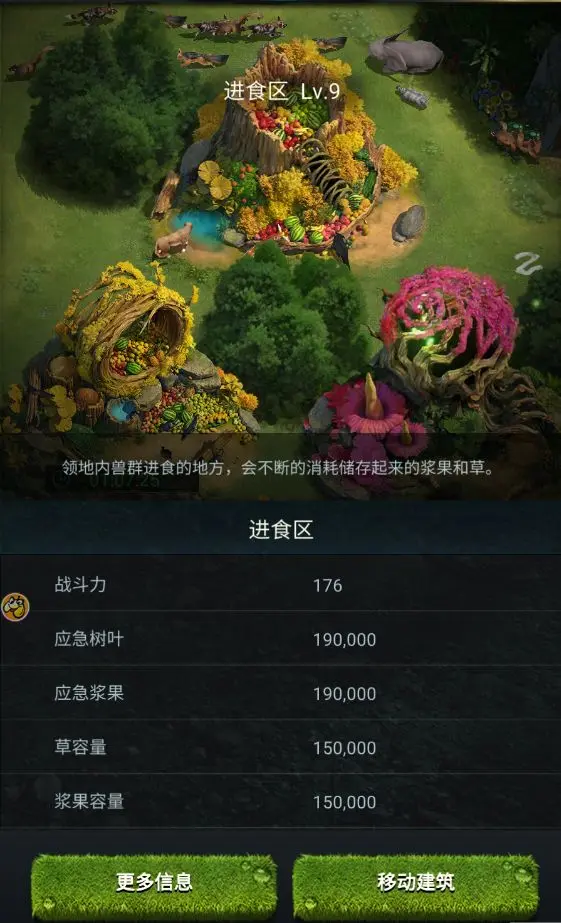 既然野兽们战斗完毕,请让它们吃饱喝足!每日确保进食区具有充足的浆果和草,这关乎你领地蜂蜜的生产效率!