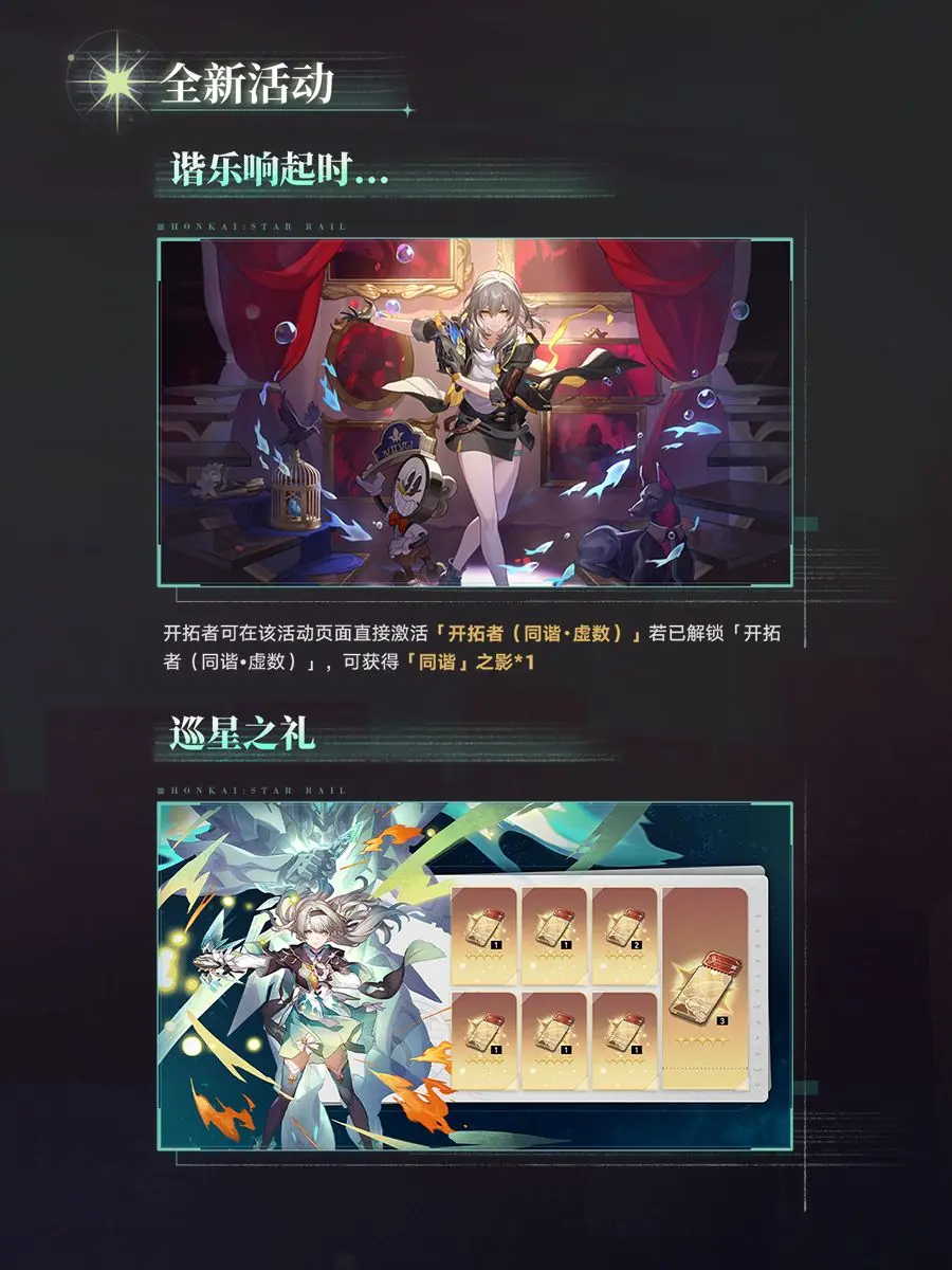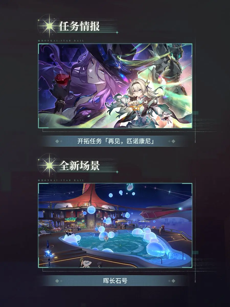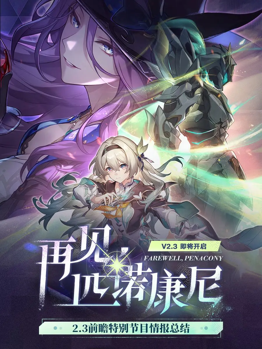 2.3版本「再见,匹诺康尼」前瞻特别节目回顾长图崩坏:星穹铁道 - 新闻星发布于 2024-06-08关注 《崩坏:星穹铁道》2.3版本「再见,匹诺康尼」前瞻特别节目现已结束,全新角色、全新场景、全新活动即将上线,欢迎各位届时登陆星穹列车,开启新的冒险旅途!本次特别节目中的兑换码将于6月8日23:59:59失效,记得尽快兑换哦~点击下方图片,看看这次特别节目都讲了什么内容帕!