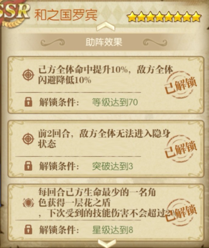 从上面我们可以看出,和之国罗宾是一个软辅角色,拥有较强的团队增益,自身也拥有一定的生存能力,但输出能力不佳。