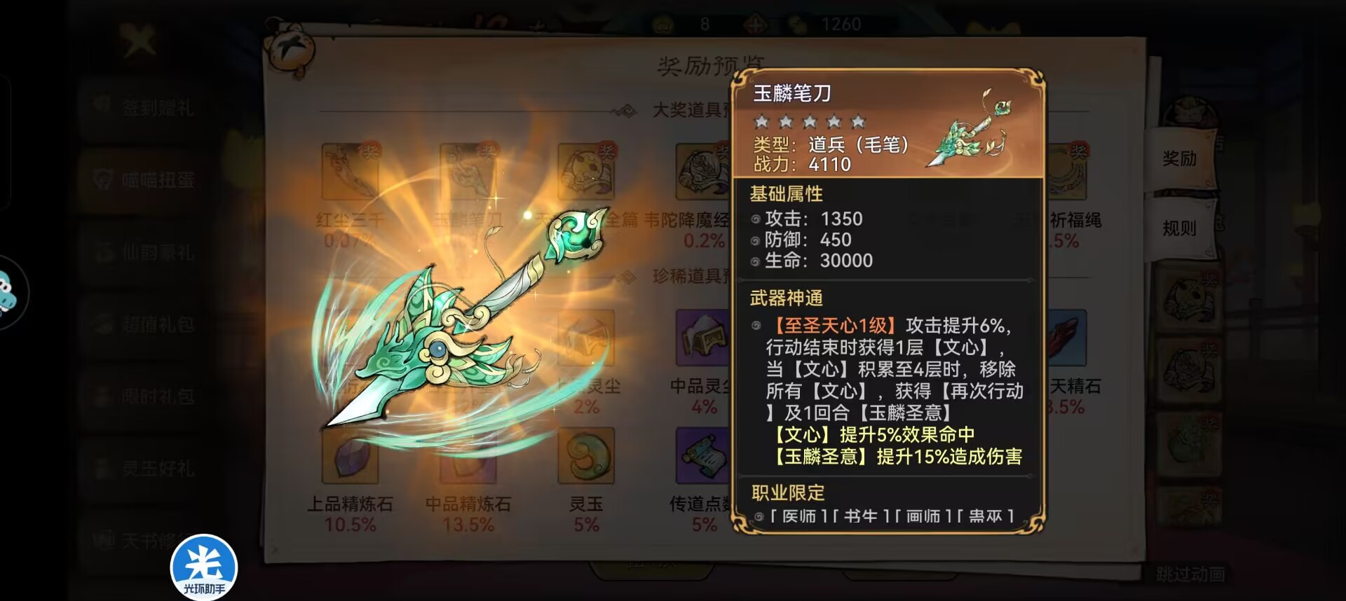 总之这个活动又看脸又氪金,虽然新道兵和新功法很强,但是平民玩家狮子只建议参加100次来赌运气就行,剩下的灵玉还是存起来留给后面的活动或者是仙缘弟子。