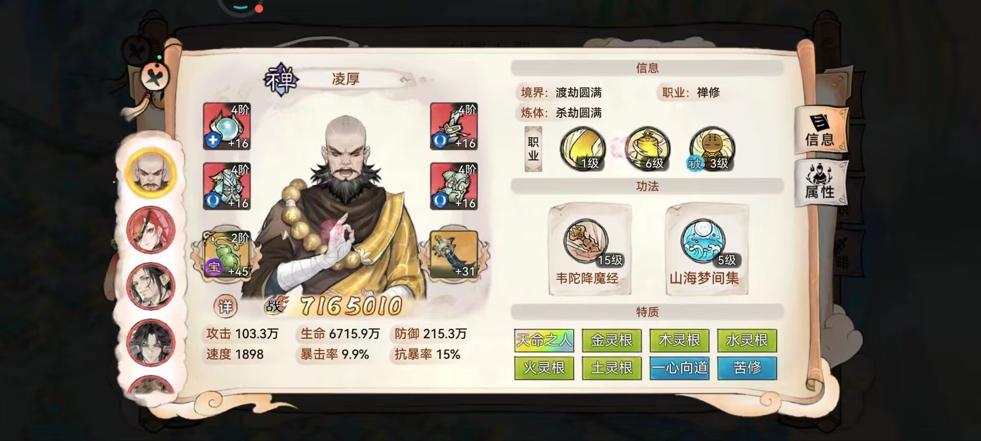 那么这本功法是以防御打全体伤害的功法!!无疑是天土禅的首选输出功法,玩天土禅的玩家这本功法必拿,和天土禅是绝配输出功法,没有之一!