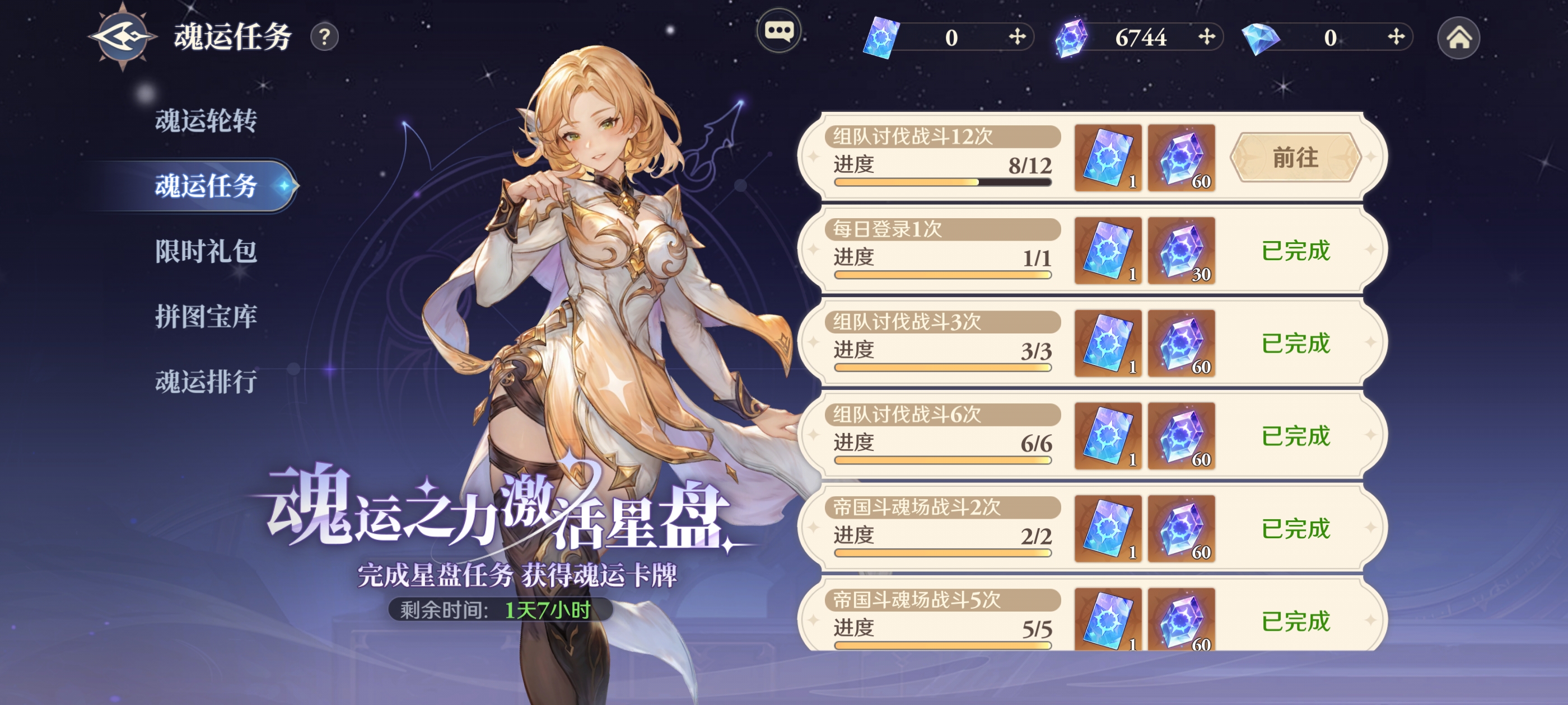 如图所示每层需要16张魂运牌开启下一层奖励,每横纵列点亮会获得相应奖励。解锁全部16张魂运牌将获得当前层奖励。