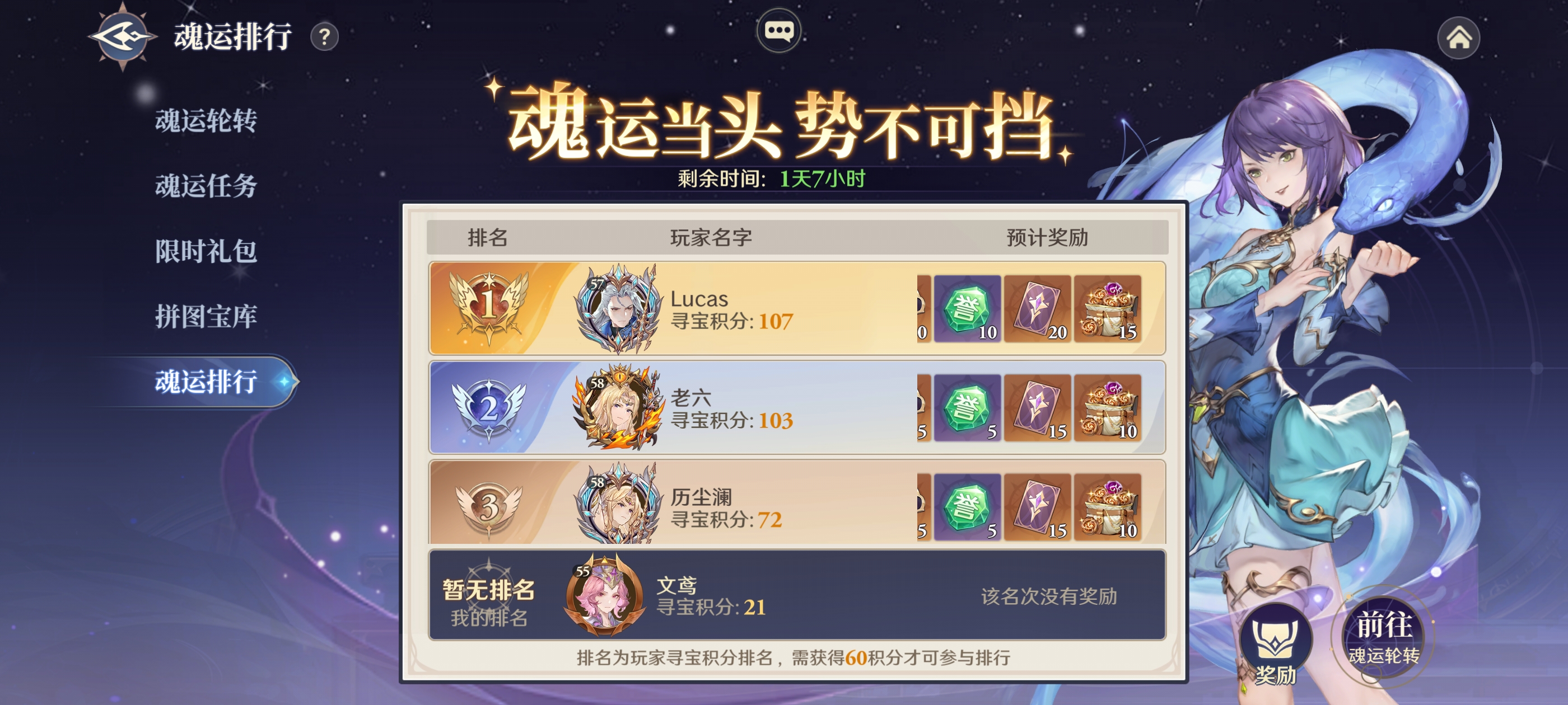 排名可获得「魂骨抽奖券」和「魂骨养成自选」,目前不冲榜的0氪玩家完全不用考虑,道具提升战力一般,氪佬随意。