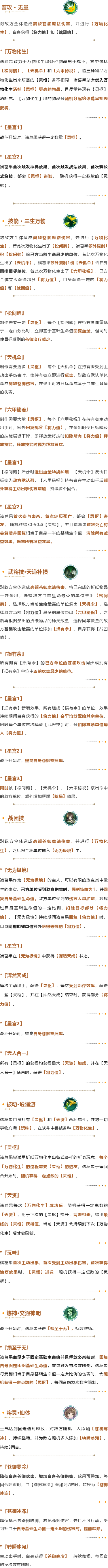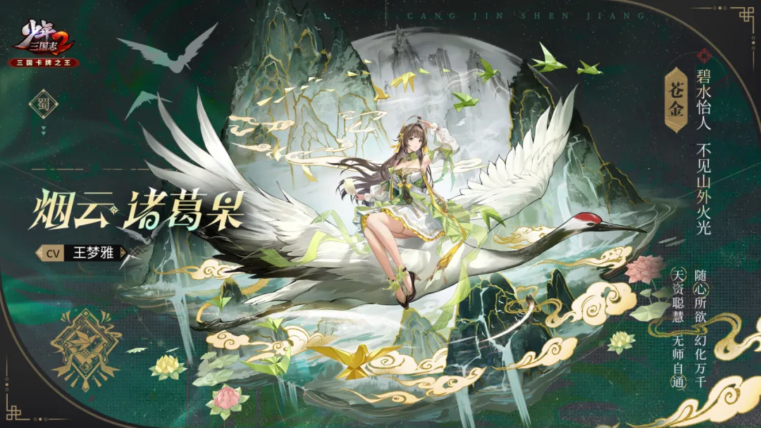武将公开 | 烟云 · 诸葛果技能全公开!勤勉搬运的后辈君发布于 2024-06-11关注 武将简介“爱未字人,教以禳斗。奉事不懈,必证仙果。”作为蜀汉丞相诸葛亮的女儿,据传诸葛果出生时,仙气冲天,白鹤云集。诸葛果天资聪慧,奇门五行、太极八卦的能力仿佛与生俱来,经诸葛亮的点拨之后,其造诣更是突飞猛进。诸葛果精通万物化生之法,一纸一符经她的作法,都可幻化珍禽异兽。成都西南方有一座朝真观,传说有人在此见到诸葛果驾鹤乘烟而起,故而又名为乘烟观。