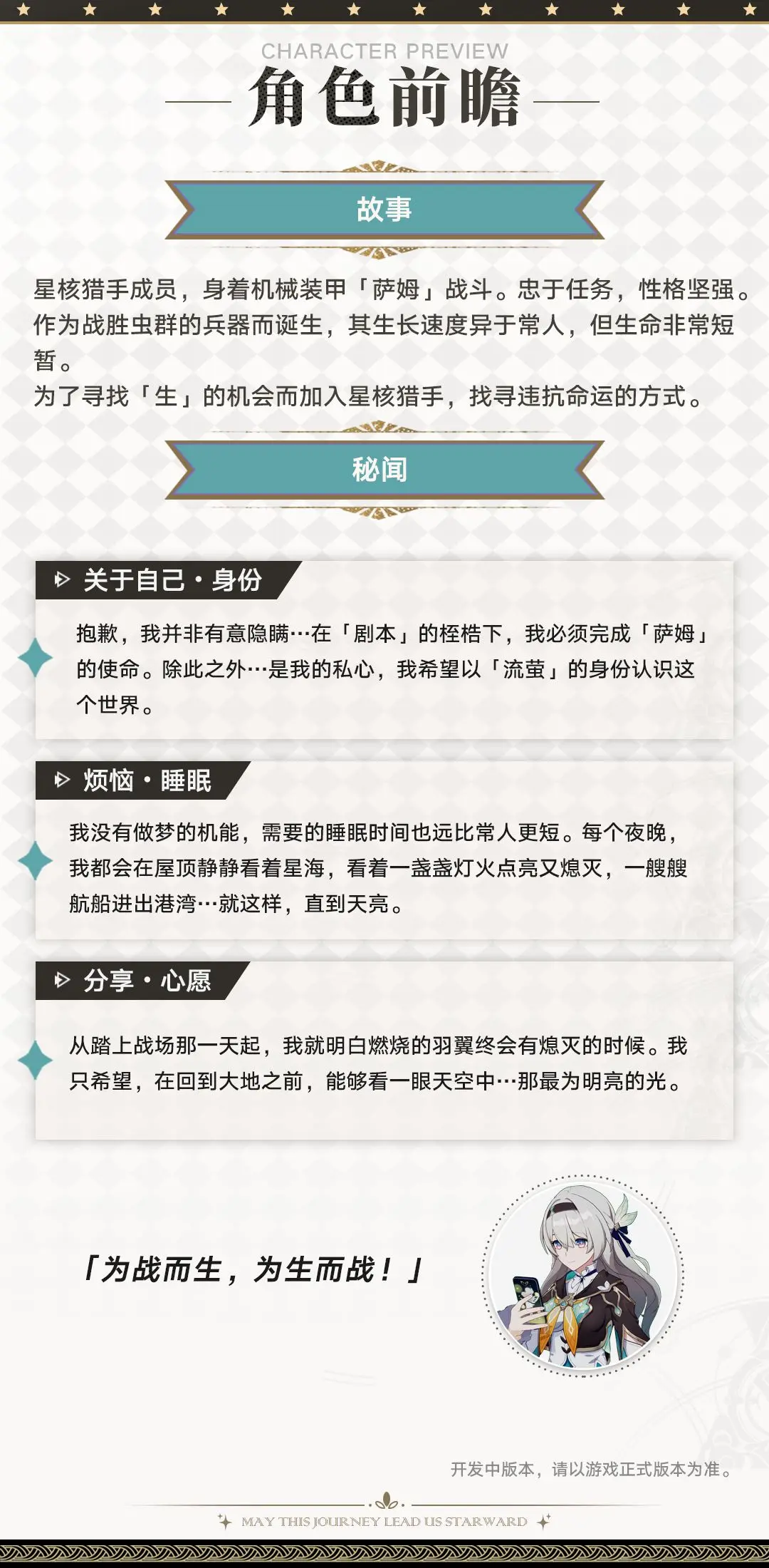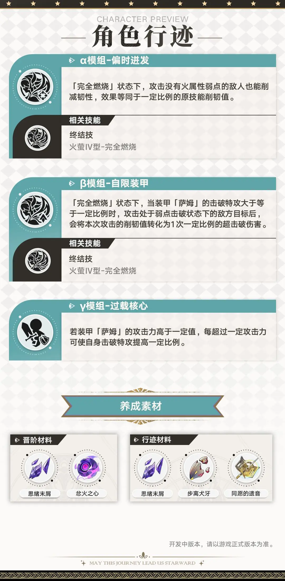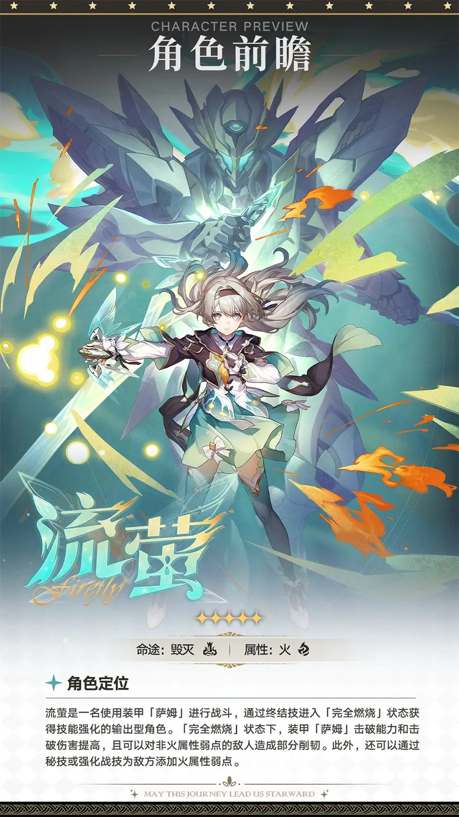 开拓者好呀~今天为大家带来「流萤(毁灭•火)」的角色前瞻!