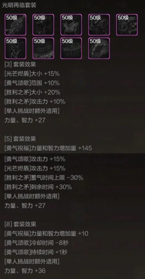 但更为推荐的是5件套搭配散件,提升更为明显,因为核心辅助技能已经在5件套当中体现出来了,搭配散件如下: