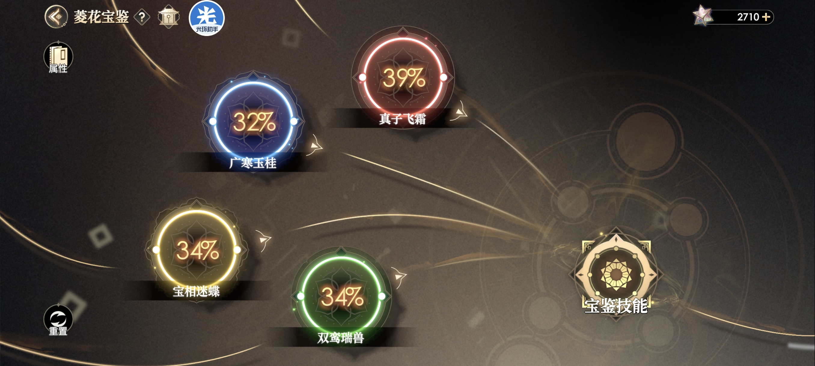 宝鉴技能共有8个,但并不是所有的宝鉴技能都很重要且强力的,因为水月镜花的稀有性(产出较少且价格很贵),所以我们对于这些宝鉴技能就要做出取舍,选择优先激活更强更重要的技能。
