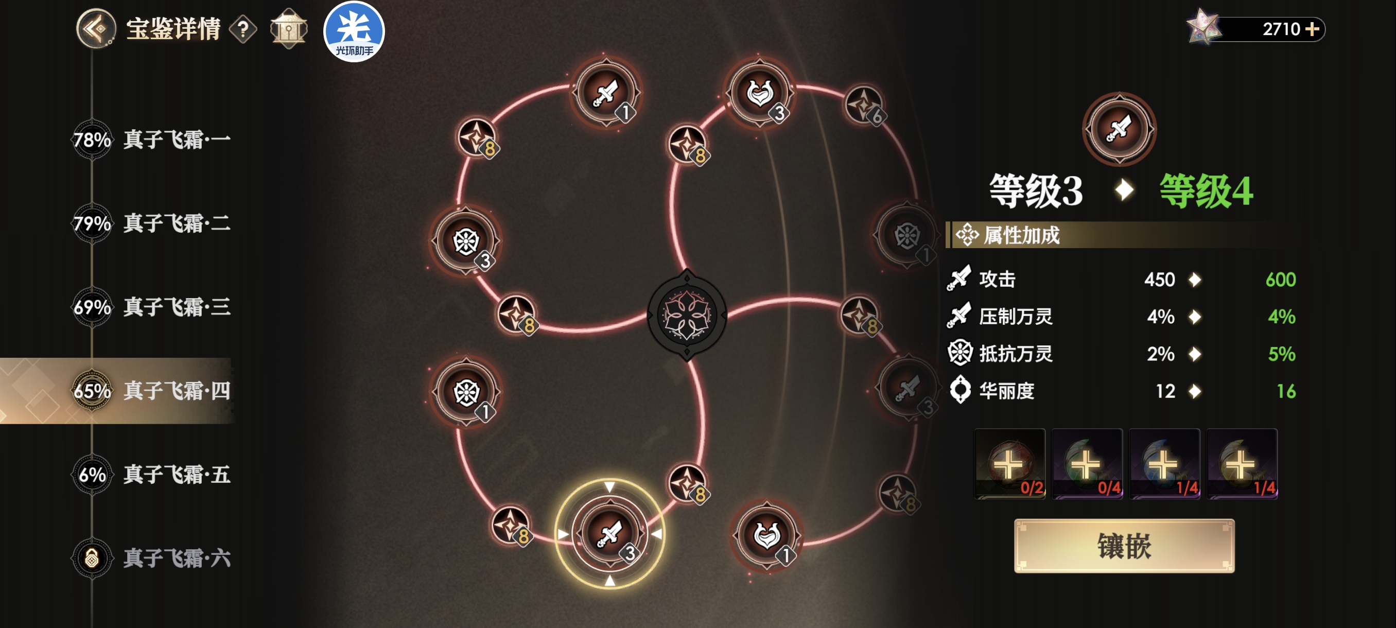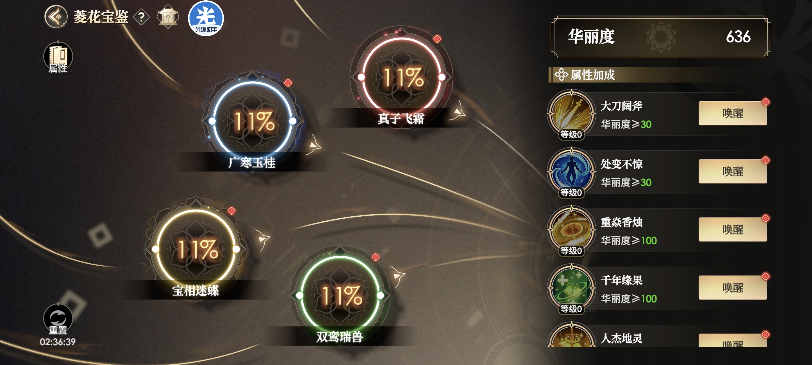 宝鉴养成分为红/蓝/黄/绿四色分支,四色内节点和属性完全一致,只是有颜色分别,方便日常活动循环获得。
