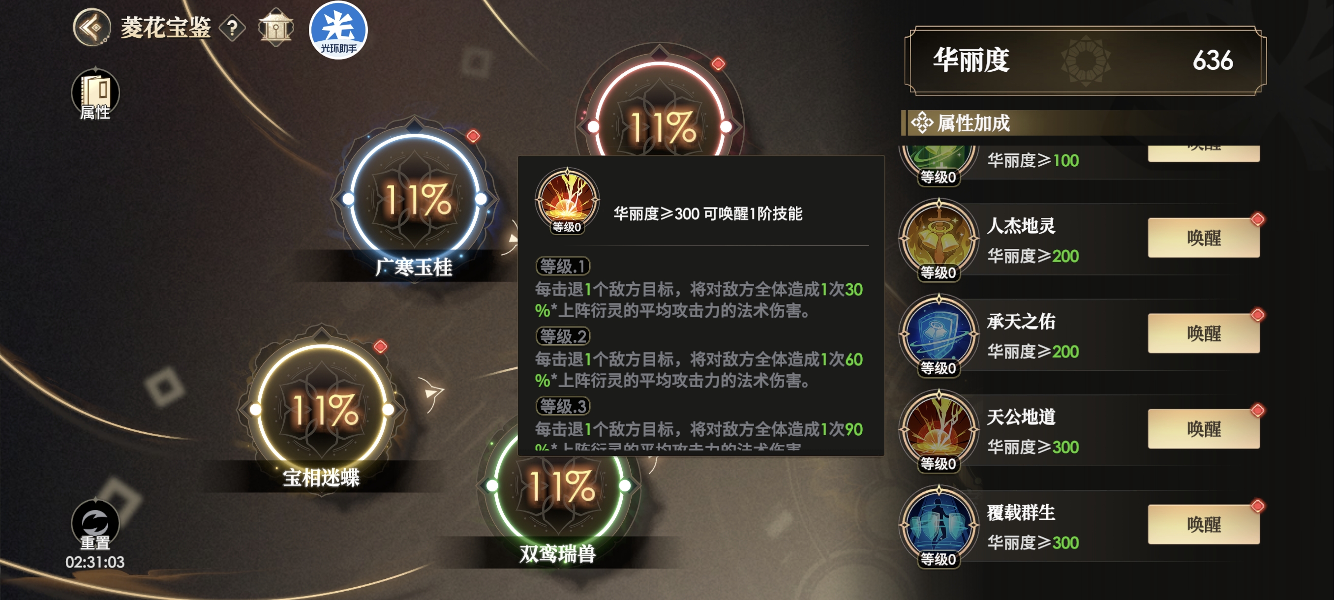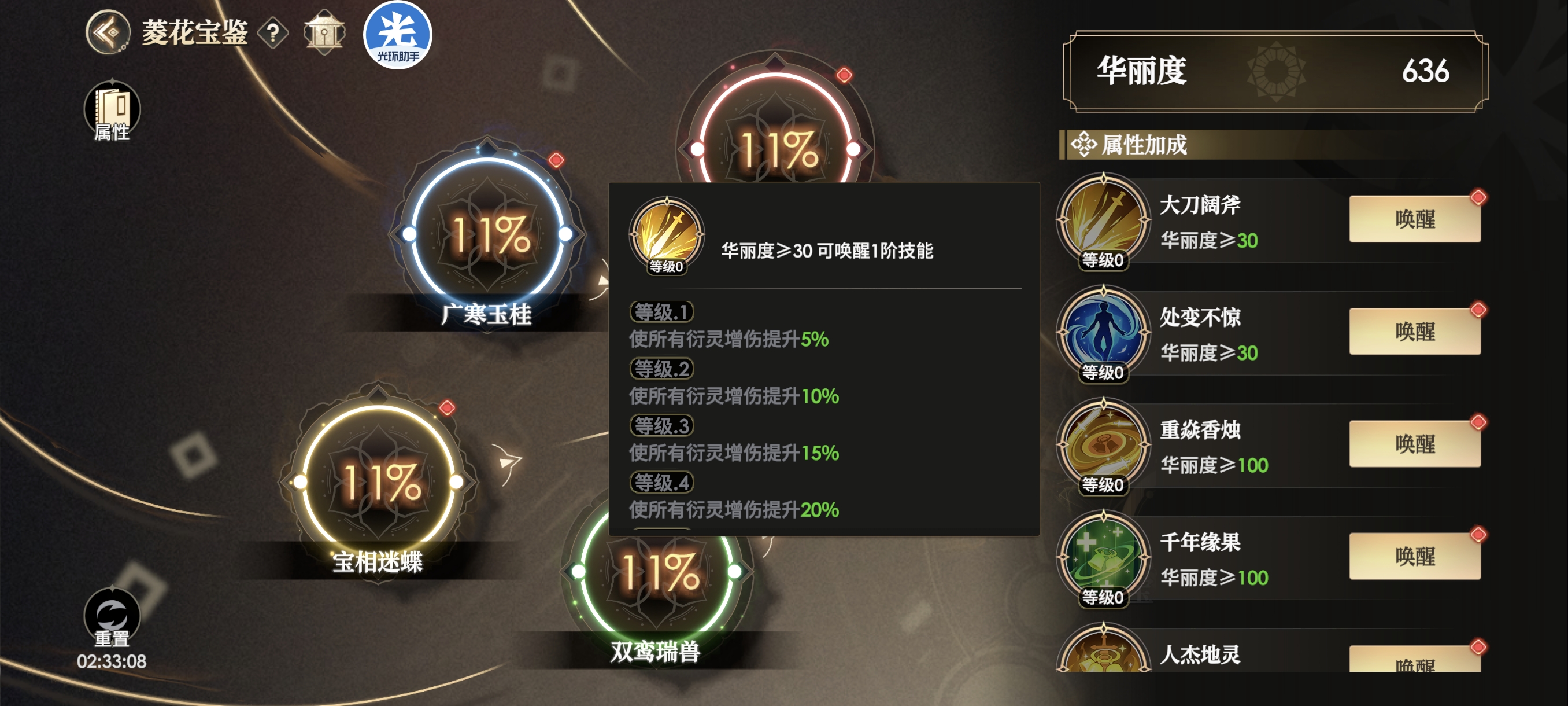 而第4层以后的大节点,在升到3级以后,继续往上升级就需要2个琉璃珠,每级加成变为3%。(即单个琉璃珠收益由2%降低为1.5%)