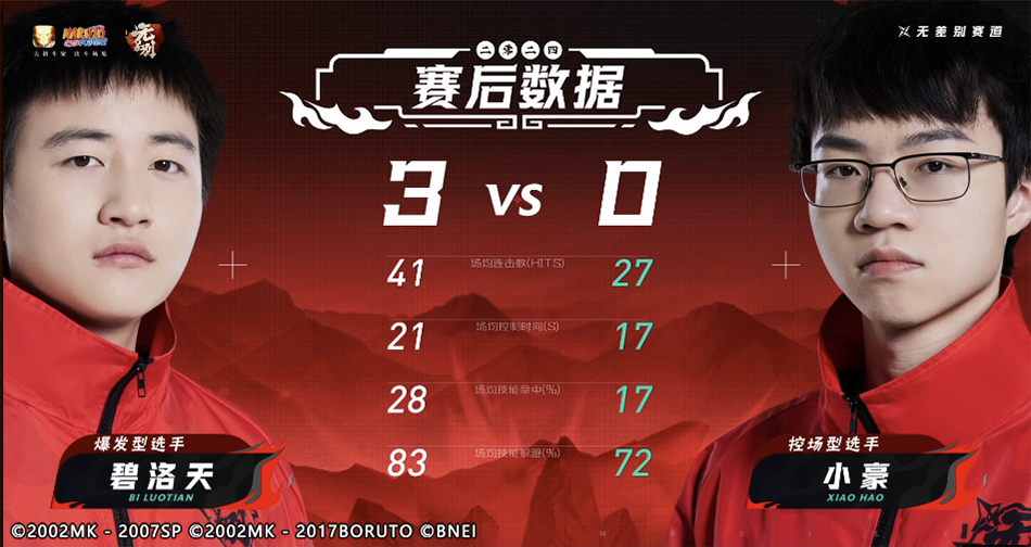 败者组第一轮第2场,碧洛天对阵小豪。第一局,碧洛天被小豪用李洛克「杜门」带走两名忍者后,用大蛇丸完成反三,反败为胜。之后,碧洛天越战越勇,拿下之后两局的胜利,以3:0的成绩晋级,小豪无缘决赛。