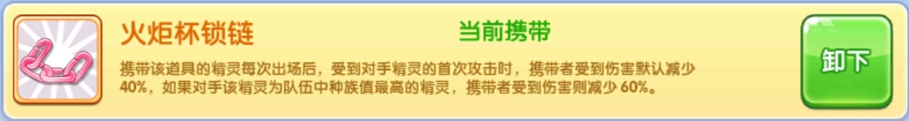 风速狗在上场扰动和中转时都需要减伤为其提供机会,火炬杯锁链有着极其可怕的减伤效果,是一个非常适合风速狗的携带道具。