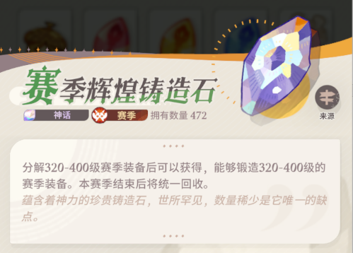 玩家可在英雄厅堂的赛季装备界面锻造装备