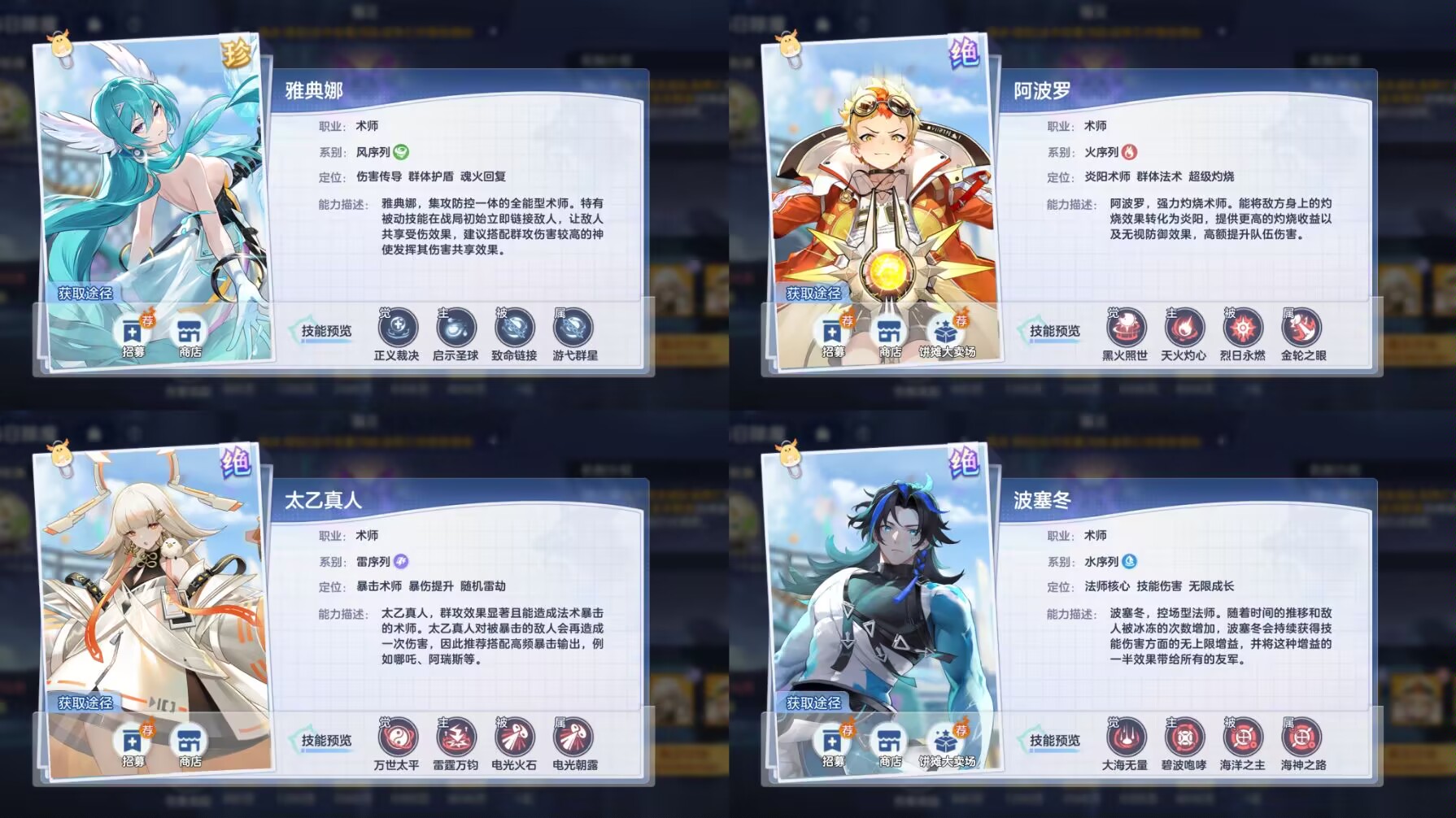 ⭐最佳理想神使推荐:白泽、太乙真人、波塞东、雅典娜、阿波罗。
